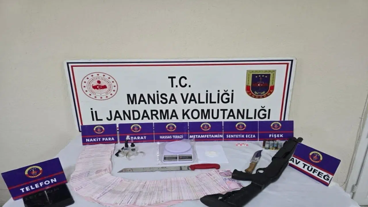 Manisa'nın Alaşehir İlçe Jandarma Komutanlığına bağlı ekipler tarafından yürütülen devriye görevi sırasında şüphelenilen araç durdurularak arama yapıldı. Araçta bulunan A.O. (31), B.T. (34) ve M.S. (28) isimli şüphelilerin üzerinden uyuşturucu madde ele geçiren ekipler, operasyonun devamında S.U. (40) ve S.E. (37) isimli şahısların evlerinde de arama yaptı. Operasyonda 18 gram kimyasal uyuşturucu, 8 adet sentetik uyuşturucu hap, 1 adet hassas terazi, 5 adet uyuşturucu madde kullanma aparatı, 1 adet ruhsatsız av tüfeği ve bu silaha ait fişekler, 1 adet kasatura, 1 adet döner bıçağı, 2 adet cep telefonu ve suçtan elde edildiği değerlendirilen 72 bin 500 TL ele geçirildi.
