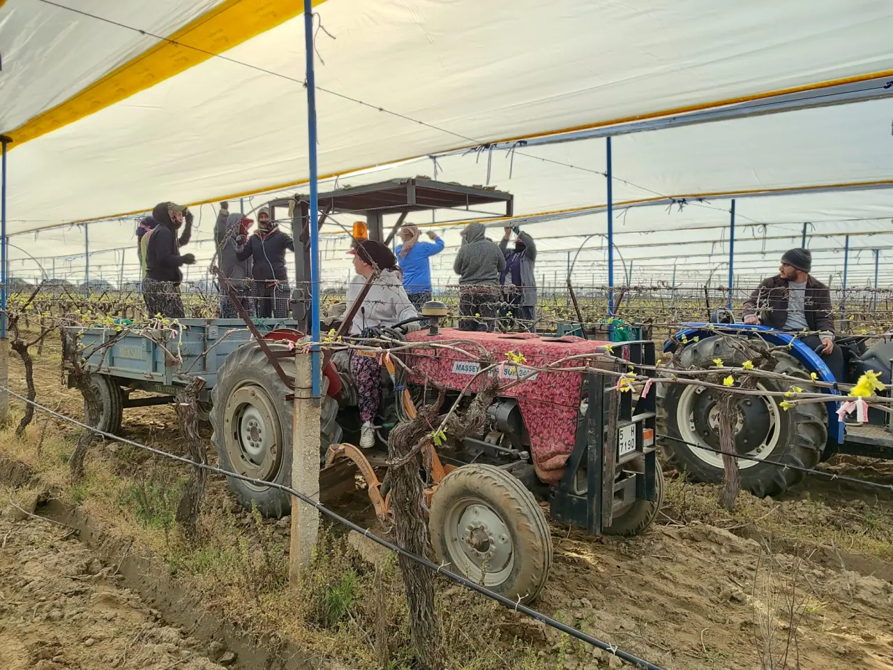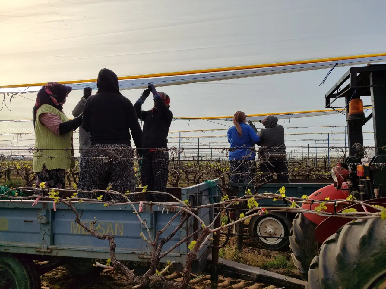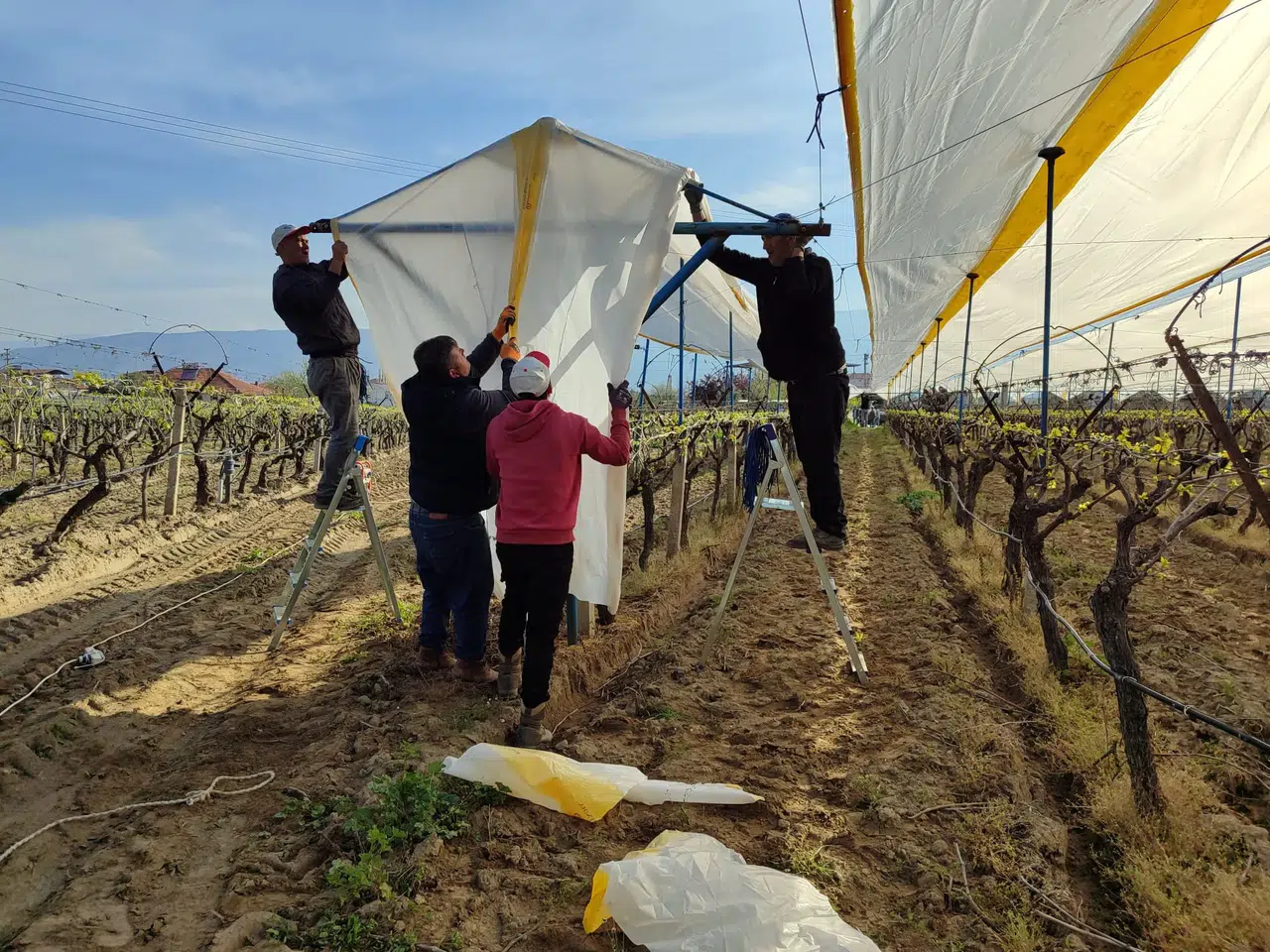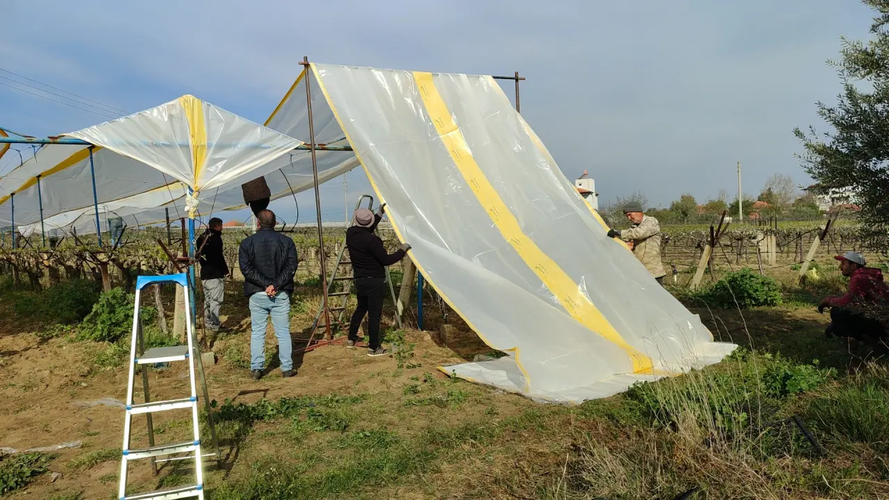 Türkiye’nin önemli üzüm üretim merkezlerinden Manisa’nın Sarıgöl ilçesinde bağlarda yeni sezon için koruma çalışmaları başladı. Yapraklanmaya başlayan bağlar, olabilecek dolu, yağmur ve soğuk hava riskine karşı üreticiler tarafından özel örtülerle kapatılıyor. Sarıgöl’de üzüm üreticileri her yıl olduğu gibi bu yıl da bağlarının üzerini dolu tülleriyle kapatarak, doğa olaylarına karşı önlem alıyor. Bu yöntemle bağların zarar görmesinin önüne geçilirken, ürün kalitesinin ve verimin de korunması hedefleniyor.