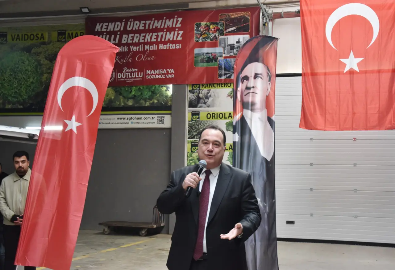 Manisa Büyükşehir Belediye Başkanı Besim Dutlulu konuşmasında emeği geçenlere teşekkür ederek yerli üretimin önemine vurgu yaptı. Dutlulu, “Bugün biraz hüzünlüyüz. Gülşah başkanımız hastanede tedavi görüyor, inşallah güzel haberler alırız. Ama sizleri gördüğümüz için de çok mutlu olduk. Çünkü sizler bu ülkenin geleceğisiniz. Yerli Malı Haftası, yerli üretimin ve tüketimin öneminin anlatıldığı çok değerli bir haftadır. Ülkemiz üreterek ayakta duracak. Marketten, bakkaldan alışveriş yaparken Türkiye’de üretilen ürünleri tercih edin. Paramız ülkemizde kalsın, zenginleşelim” dedi.