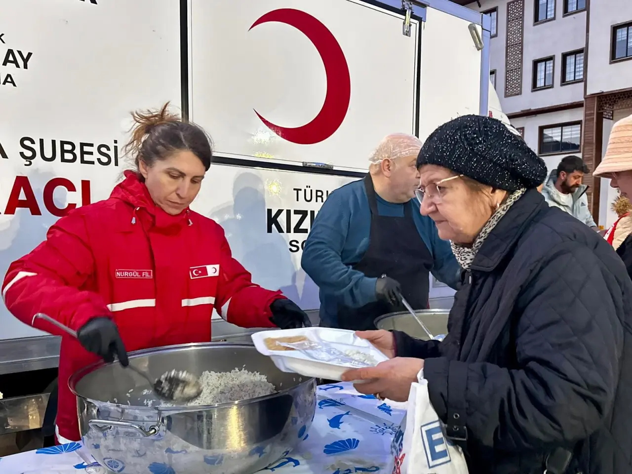 Kızılay tarafından kurulan çadırlarla gerçekleştirilen iftar yemeğine vatandaşlar yoğun ilgi gösterdi.