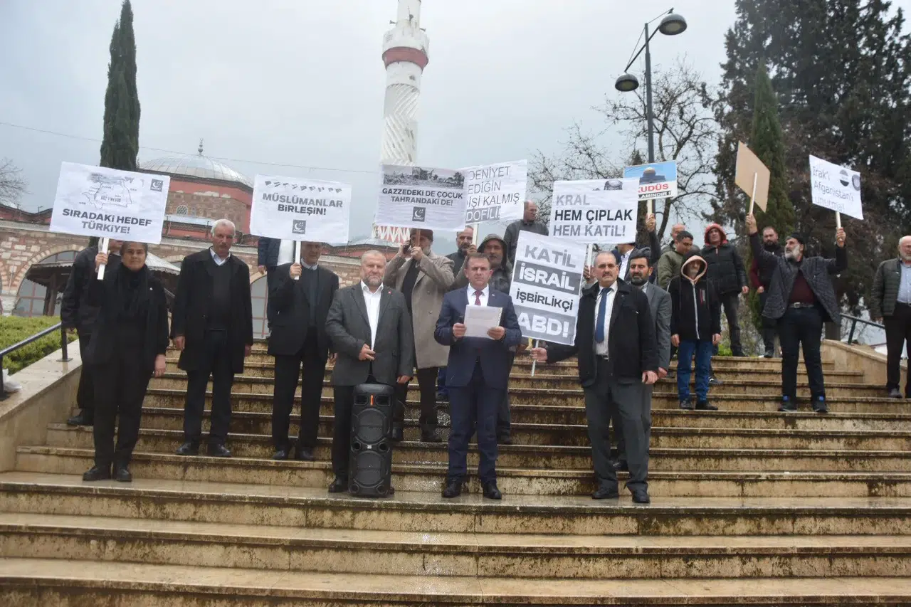 Saadet Partisi Manisa İl Başkanı Zekayi Yılmaz, yaptığı konuşmada, dünyanın birçok bölgesinde yaşanan insanlık dramlarına karşı sessiz kalmayacaklarını ifade etti. Başkan Zekayi Yılmaz, "Bugün burada sadece bir basın açıklaması yapmak için değil; başta İslam coğrafyası olmak üzere dünyanın dört bir yanını saran zulüm ateşine karşı birer İbrahimî damla olmak ve mazlumun kimliğine bakmaksızın onunla omuz omuza durduğumuzu tüm dünyaya ilan etmek için toplandık. Millî Görüş hareketi olarak bizler, tarih boyunca olduğu gibi bugün de coğrafya, mezhep ve kimlik ayrımı yapmaksızın zalimin karşısında elif gibi dimdik duruyoruz. Aylardır dünyanın gözü önünde, tarihin kaydedebileceği en vahşi, en alçak soykırımlardan biri Gazze’de işlenmektedir. Bebeklerin süt kokusuna barut kokusunun karıştığı, annelerin feryadının arşı titrettiği bu mübarek topraklar; bugün sözde modern dünyanın sahte "insan hakları" maskesinin düştüğü yerdir. Gazze bugün sadece bir coğrafi bölge değil; imanın, direnişin ve topyekûn insanlık onurunun son kalelerinden biridir. Şunu herkes bilsin ki: Gazze’de dökülen her damla kan, bu zulme sessiz kalanların vicdanına sürülmüş kara bir lekedir. Bu katliam durana, abluka tamamen kalkana dek durmayacağız, susmayacağız! Onurumuz, kırmızı çizgimiz ve ilk kıblemiz olan Mescid-i Aksa, bugün işgalci postalları altında zincirlenmiştir. Bu zincirler sadece taş duvarlara değil; Müslümanların ibadet hürriyetine ve tüm insanlığın inanç kutsiyetine vurulmuş bir prangadır. Unutulmasın ki Kudüs zincirliyse İslam coğrafyası esirdir. Biz Saadet Partisi teşkilatları olarak gür bir sesle haykırıyoruz: Kudüs özgürleşmeden dünya huzura kavuşamaz; Mescid-i Aksa’nın zincirleri kırılmadan insanlık prangalarından kurtulamaz. Siyonizmin pervasızlığına karşı sadece "kınama" mesajları yayınlamak yetmez! Zulme karşı sadece "üzüntü" beyan etmek bu ateşi söndürmez! Türkiye sadece sözle değil; siyasi, ekonomik ve diplomatik tüm caydırıcı gücüyle mazlumun yanında yer almalıdır. Çünkü İsrail ancak ve ancak güçten anlar. Komşumuz İran topraklarına yönelik gerçekleştirilen saldırılar, kardeş Lübnan’da sivil halkın üzerine yağan bombalar; terör şebekesinin bölgemizi topyekûn bir ateş çemberine sürükleme projesinin son halkasıdır. Bizler, emperyalizmin ve siyonizmin önümüze koyduğu mezhep fitnesini ve etnik kışkırtmaları reddediyoruz. Bilinmelidir ki emperyalizm sadece bomba yağdırmaz; ekonomik ambargolarla ve finansal terörle halkları açlığa mahkûm ederek diz çöktürmeye çalışır. Bizim lügatimizde "tarafsızlık" yoktur! Biz safı belli olanlarız; biz hakikatin tarafındayız! Zulüm kimden gelirse gelsin karşısında, mazlum kim olursa olsun yanındayız. Gazze’deki vahşet son bulana dek, • Mescid-i Aksa’yı çevreleyen zincirler kırılana dek, Emperyalizmin kirli eli coğrafyamızdan çekilene dek; Mücadelemiz, azmimiz ve kararlılığımız artarak devam edecektir! Bizler provokasyonlara gelmeden, vakar ve sükûnet içerisinde, birleştirici bir dille haykırıyoruz: Zulüm ile abad olanın ahiri berbat olur! Buradan tüm dünyaya sesleniyoruz: Mazlumların gözyaşı, zalimlerin saltanatını mutlaka yıkacaktır. Kudüs’ün özgürlüğü ve İslam coğrafyasının selameti için bütün gücümüzle çalışmaya, hakkı ve hakikati haykırmaya devam edeceğiz. Zafer inananlarındır ve zafer yakındır" dedi.