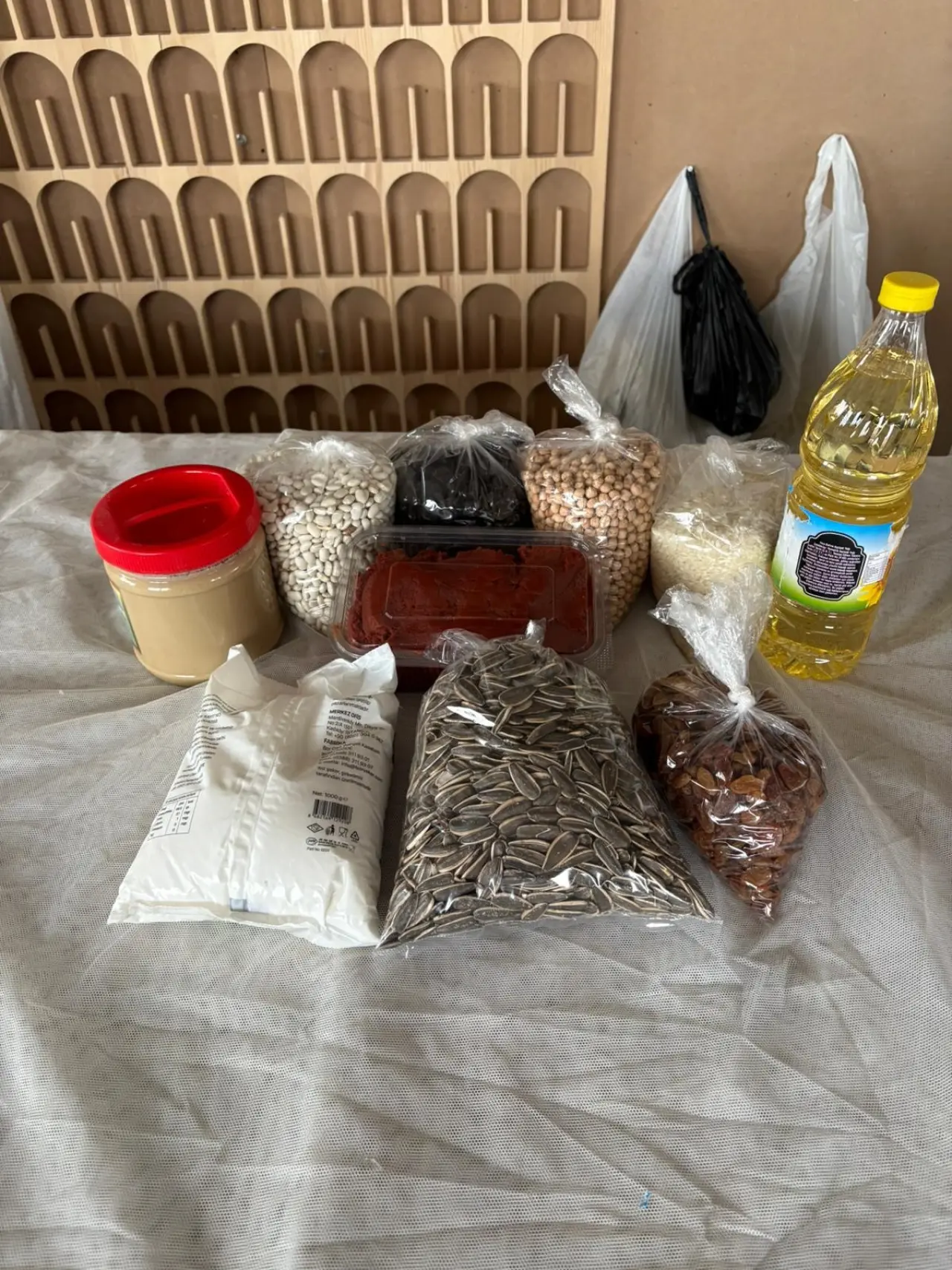 Erzak paketinde, 1 kilo nohut, 2 kilo kuru fasulye, 1 kilo siyah zeytin, 1 kilo yeşil zeytin, 1 kilo salça, 1 kilo tahin, yarım kilo üzüm, 1 kilo bulgur bulunduğunu belirten Altıntaş, şunları söyledi: