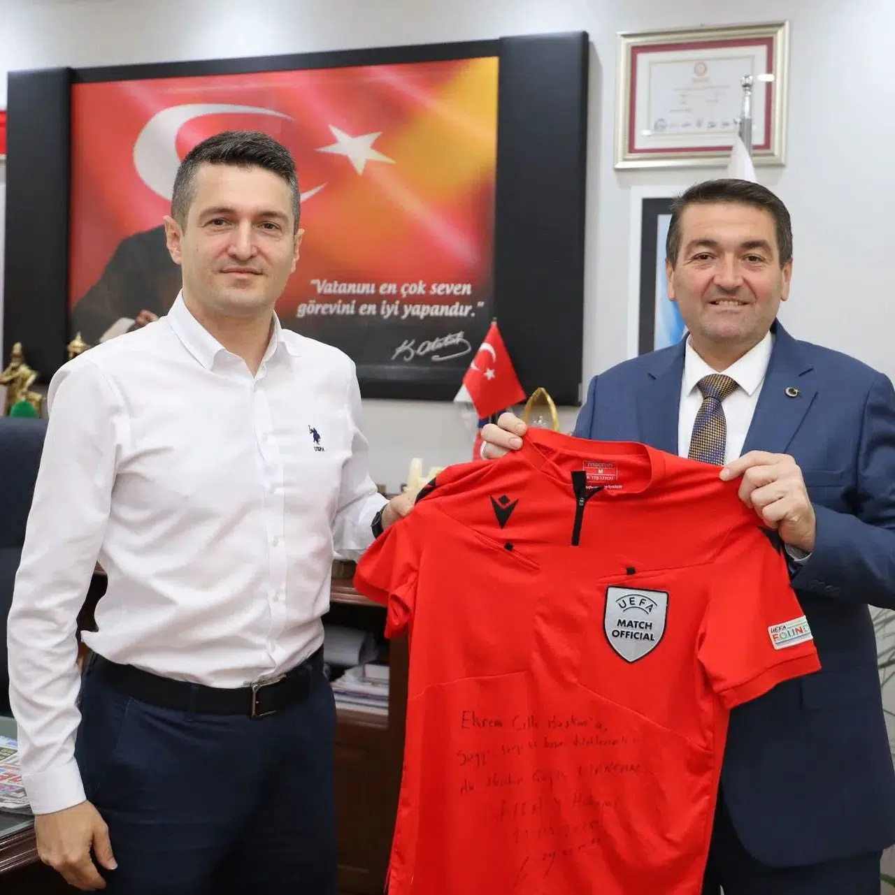 Başarılı performansıyla dikkat çeken Uyarcan, artık uluslararası müsabakalarda ülkemizi temsil edecek. Uzun yıllardır sahalarda gösterdiği istikrarlı yönetim anlayışı ve disiplinli duruşuyla üst klasmanlara yükselen Manisalı hakem, emeğinin karşılığını FIFA kokartıyla aldı. Törende yapılan takdim sonrası objektiflere poz veren Uyarcan, hem Manisa’nın hem de Türk hakemliğinin gururu oldu.