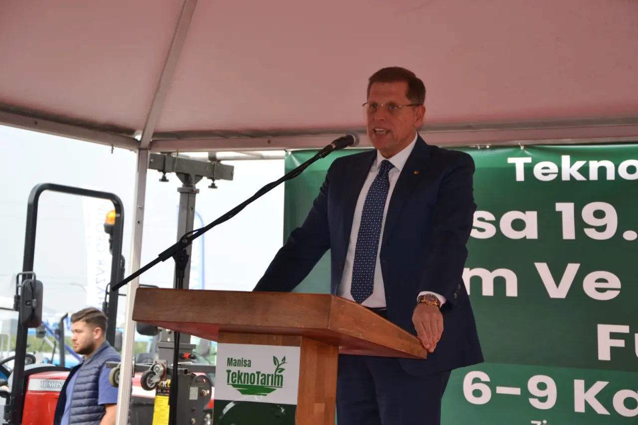 Şehzadeler Ziraat Odası Başkanı Hüseyin Altındağ ise Manisa’nın tarım ve hayvancılıkta Türkiye ekonomisine yön veren iller arasında olduğunu vurguladı: “Bugün burada, ilimizin ve bölgemizin tarım ve hayvancılık alanındaki gücünü, potansiyelini ve yenilikçi vizyonunu bir kez daha ortaya koymak için bir aradayız. 19. kez düzenlenen bu fuar, çiftçilerimizin yeni teknolojilerle tanışmasına, bilgi ve deneyim paylaşmasına vesile olacaktır. Fuarlar sadece ürünlerin sergilendiği yerler değil; aynı zamanda bilgi alışverişinin yapıldığı, üretici ile tüketicinin buluştuğu ticaret merkezleridir. Manisa, güçlü tarımsal altyapısı, verimli toprakları ve üretken insan gücüyle ülkemizin tarım ekonomisine yön veren şehirlerin başında geliyor. Tarım ve sanayi sektörlerinin birlikte geliştiği nadir illerden biri olan Manisa’da yaklaşık 400 bin vatandaşımız geçimini doğrudan ya da dolaylı olarak tarım ve hayvancılıktan sağlıyor. Bu yönüyle tarım sadece bir geçim kaynağı değil, aynı zamanda Manisa’nın sosyal ve ekonomik hayatını ayakta tutan en önemli damarlardan biridir. Böylesine önemli bir fuarın düzenlenmesi, hem üreticilerimiz hem de şehrimiz açısından büyük anlam taşımaktadır.” Tarım ve Orman Bakanlığı Yayım ve Eğitim Daire Başkanı Sürur Kır, Manisa tarım fuarının 19 yıldır düzenlenmesinin çok önemli olduğunu vurgulayarak, emeği geçenlere teşekkür etti. Konuşmaların ardından Vali Özkan ve beraberindekiler açılış kurdelesini kesti, stantlardaki ürünleri inceledi.