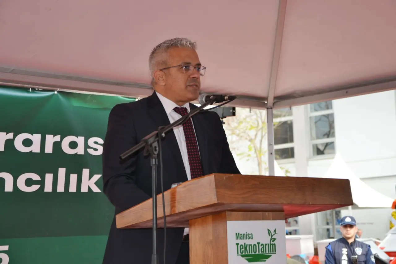 Manisa Valisi Vahdettin Özkan, Manisa’nın bereketli topraklarıyla Türkiye’nin en verimli şehirlerinden biri olduğunu belirtti. Tarımsal verimliliğin çiftçilerin gayretiyle ve yeniliklere açık anlayışla daha da geliştiğini söyleyen Özkan, “Bunu daha da iyileştiren çiftçilerimizin fedakârlığıdır, girişim ruhudur. Tarıma dayalı sanayinin iyileşmesi için sanayicimizin katkısı, dünyayı tanıyan gençlerimizin enerjisidir. Bilgi teknolojilerinin etkin kullanımı da büyük bir fırsat yaratıyor. Bütün bunları bir araya getirdiğimizde, Manisa’nın tarımsal hasılaya dayalı gelişim serüvenine çok daha yüksek bir ivme kazandırmış olacağız. Ama bunun için dünyanın mevcut durumunu iyi analiz etmemiz gerekiyor. Siyasal istikrarsızlıklar, iklim değişikliği gibi gelişmelerle birlikte, şehir olarak geleceğe güvenle bakmak için neler yapmamız gerektiğini doğru değerlendirmeliyiz. Kamu otoriteleri, yerel yönetimler, meslek kuruluşları ve üreticiler olarak her birimizin doğru rolünü net biçimde tanımlamamız önem arz ediyor. Bu sürecin en doğru tarifini yapanlar da sektörün içinde alın teriyle çalışan insanlardır. Onların tespitleri, biz kamu otoriteleri için yol göstericidir.”