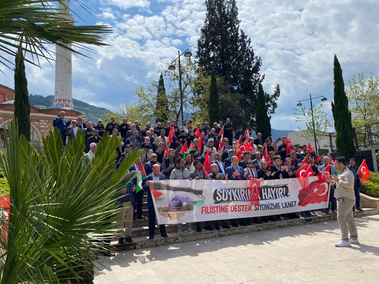 Manisa’da Filistin’e Destek Platformu tarafından Filistin’e destek için toplandı. Hatuniye Camii önünde düzenlenen basın açıklamasında, Filistin halkına ve tüm şehitlere dua edildi. Gediz Anadolu Lisesi öğrencisi Yusuf Ali Bilğin basın açıklamasını okurken, emekli müftü Mikail Polat da dualarıyla etkinliğe eşlik etti. Türk ve Filistin bayraklarıyla destek veren vatandaşlar, etkinliğe yoğun ilgi gösterdi. Etkinlik, şehrin birlik ve dayanışma ruhunu yansıtan anlamlı bir mesaj verdi.