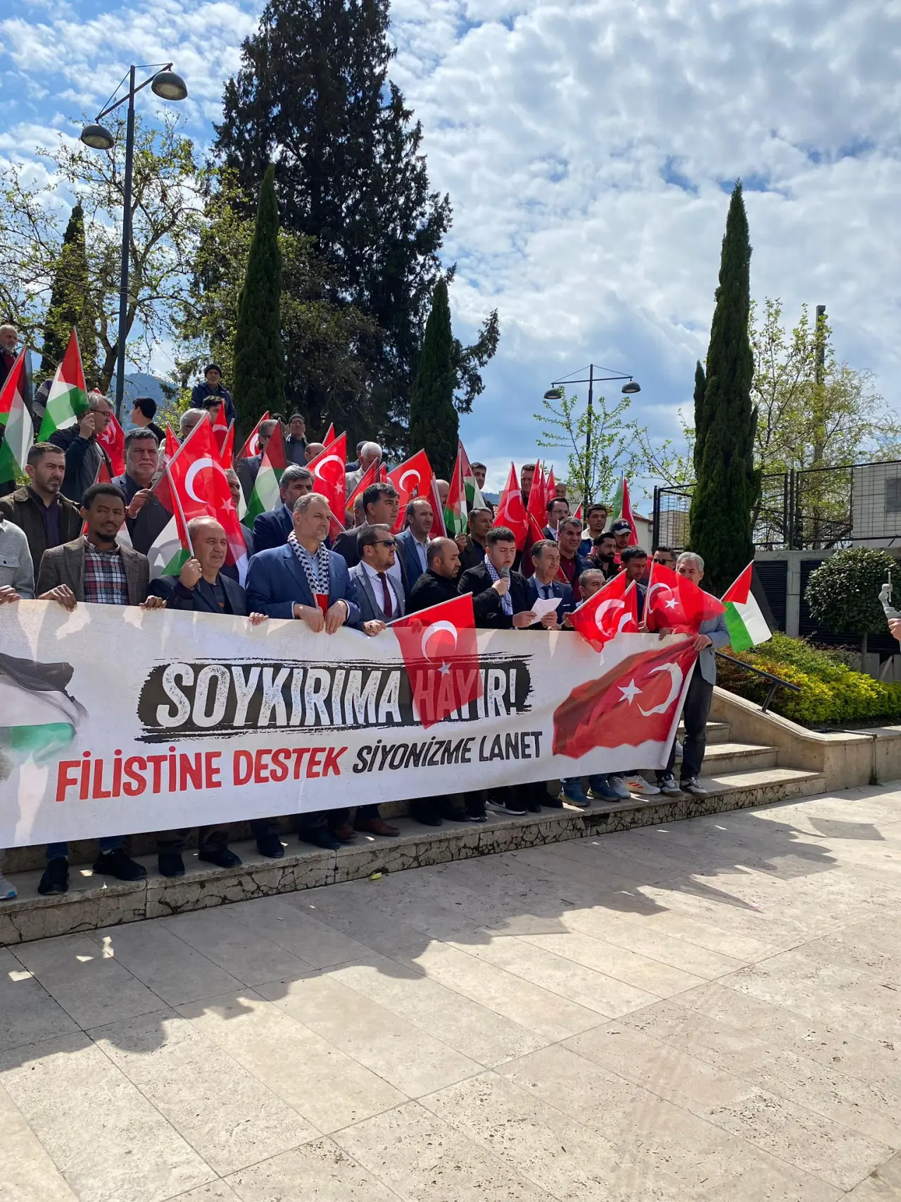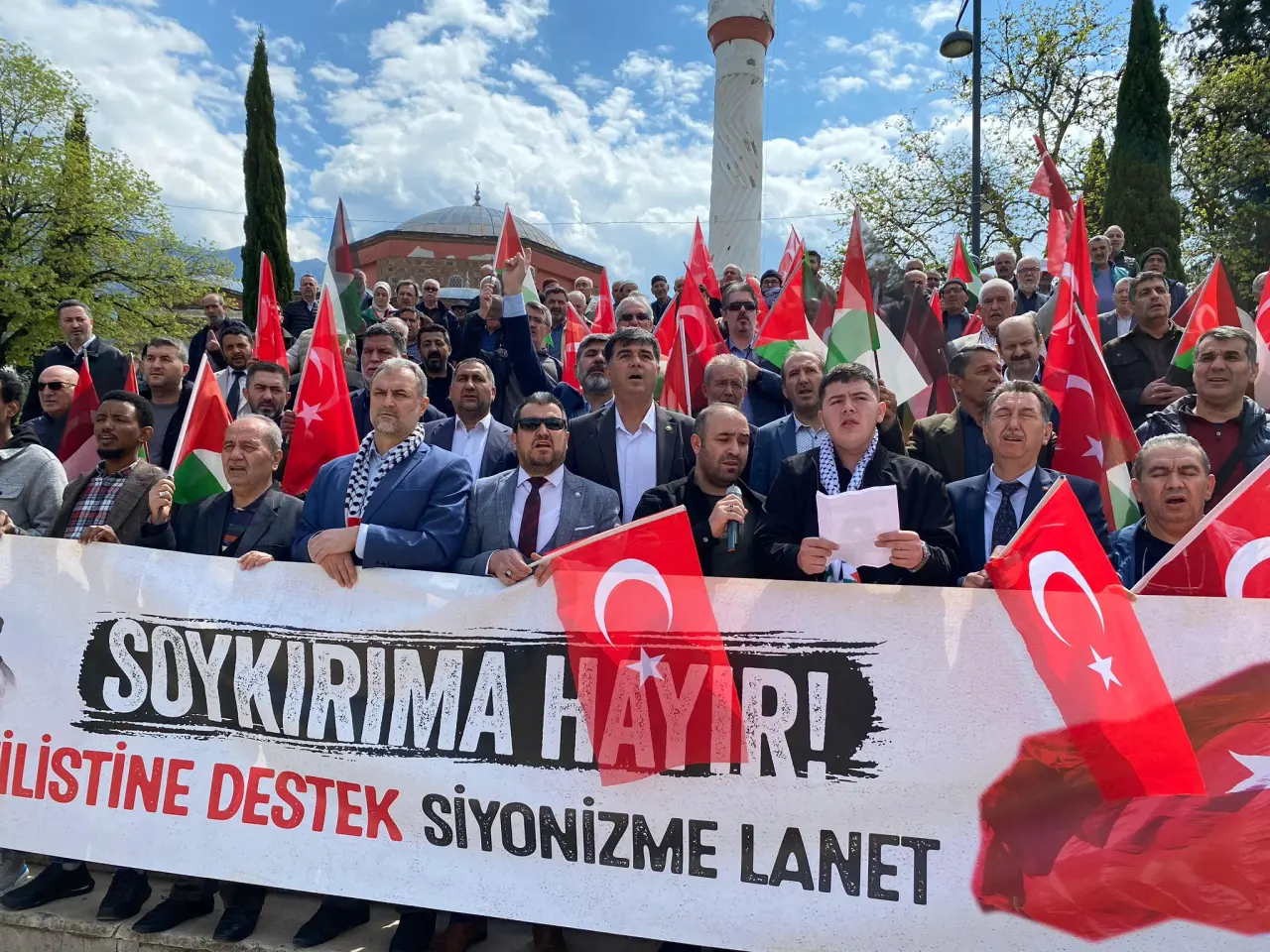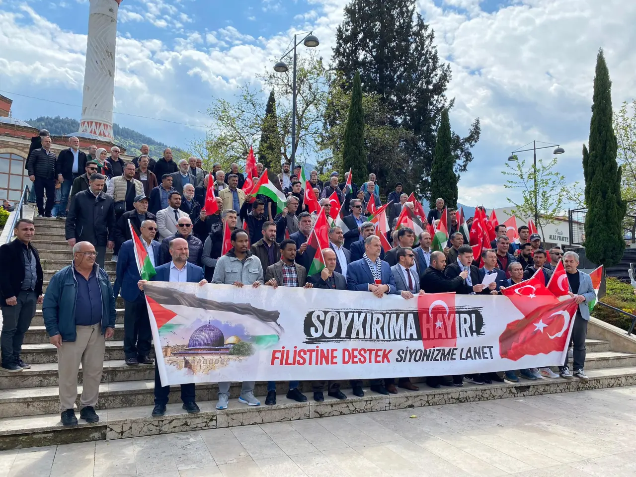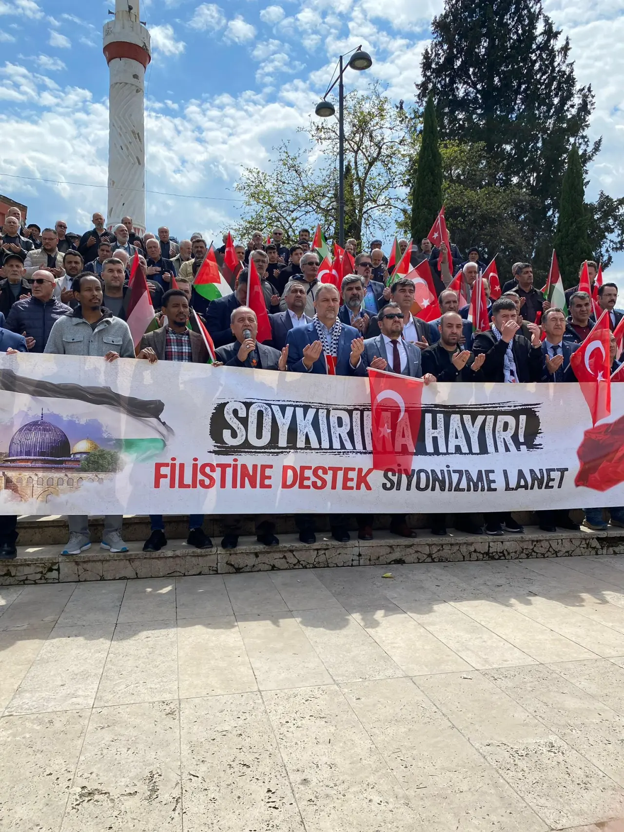 Yapılan açıklamada şu ifadelere yer verildi: “Gözü dönmüş, azgın bir grup Siyonist tarafından planlanmış ve ne yazık ki uygulamaya konulmuş, akıl almaz bir dönemi yaşamaktayız. Tüm değerlerin yok sayıldığı, çiğnendiği bir zaman diliminden geçmekteyiz. İnsanlık adeta azgın ve sapkın bir ideoloji tarafından ne yazık ki rehin alınmıştır. Biz eser değiliz! Bu esaret girişimine karşı kayıtsız kalacakta değiliz! Siyonist rejim şunu bilsin ki; zalimlerin topuna, canımızla başımızla, elimizle aşımızla, varımızla yoğumuzla direneceğiz. Siyonist İsrail rejimi tarafından, Gazze’de işlenen soykırımın kahredici acısı vicdanlarda canlı dururken, Lübnan’da ve İran’da ortaya konan yeni vahşetler insanlığı bir kez daha derinden sarsmaktadır. 165 İranlı öğrencinin, Siyonist rejim tarafından okul sıralarında katledilmesi ve bu katliamın küresel vicdanda yeteri kadar yer bulmaması bizleri derinden sarssa da, bugün burada olduğu gibi dünyanın dört bir yanından yükselen itiraz sesleri bir nebze olsun umudumuzu yeşertmektedir. Açıkça ifade etmek gerekir ki; İsrail’in Filistinlilere karşı idamı yasallaştırması tam bir vahşet, açık bir hukuk ihlalidir. İşgal ettikleri toprakların gerçek sahiplerini ipe götürmeye cüret etmek demek, kendi ipini çekmekten, terör devletinin kaçınılmaz sonunu hazırlamaktan başka bir şey değildir. Bu adımın Nazi zulmünden hiçbir farkı yoktur. Bu zulme imza atanlar ve her şey olurken sessiz kalanlar muhakkak ki, Hitler ile aynı akibeti yaşayacaktır. Yine; Mescid-i Aksa’nın ibadete kapatılması İslam’ın ve Müslümanların izzetine yapılmış bir saldırıdır. Ortaya konulan bu cürümlere karşı mücadelemiz kıyamete kadar devam edecektir. Filistin mücadelemizde önden gidenlere selam olsun. Şeyh Ahmet Yasin’e, Haniye’ye, Ebu Daif’e, son şanlı şehit Yahya Sinvar’a selam olsun. Bir Yahya’nın şehit oluşu binlerce genci hay kılacak diri kılacaktır. Her doğan Yahya sancağı daha ileri taşıyacaktır. Gözü dönmüş Netanyahu’un yargılanacağı ve hak ettiği cezayı çekeceği günlerin yakınlığı bizzat kendisi tarafından da bilinmektedir. Gün gelecek zalimler hak ettikleri muameleye maruz bırakılacaktır. Gün gelecek akan her göz yaşının, dökülen her kanın ve yetim bırakılan her canın hesabı sorulacaktır. Ve zalimler için cehennem daima yaşayacaktır. Bizler Filistin’e Destek Platformu olarak; meşrep, mezhep, siyasi görüş, din ve dil ayrımı yapmaksızın küresel bir direniş hareketi başlatmakta her yönden ve her husus da zalim Siyonist rejim ile mücadele etmekte kararlıyız. Bu bağlamda ikinci kez yola iki yüzü aşkın gemiyle çıkacak SumudFilo’suna tam desteğimizi ilan etmek istiyoruz. Bugün 81 ilimizde yaptığımız basın açıklamasıyla bunu bir kez daha teyit ediyor katılımlarınızdan dolayı Filistin’e Destek Platformu adına sizlere teşekkürlerimizi sunuyor.”