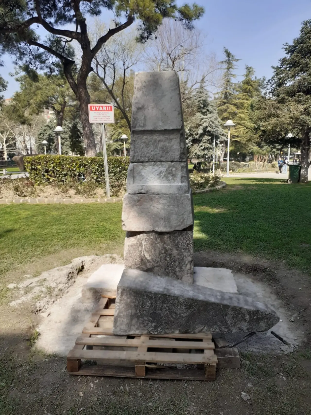Dikilitaş yaklaşık 80 yıl boyunca Ulupark’ta varlığını sürdürdü. Ancak 2013 yılında parkta yapılan yeni düzenleme sırasında anıt yerinden kaldırıldı. Parkta yaklaşık 500 metrekare büyüklüğünde sesli ve ışıklı bir süs havuzu inşa edilirken, dikilitaş yerinden söküldü. Yapılan araştırmalar sonucunda, taşın Manisa Büyükşehir Belediyesi’nin deposuna götürüldüğü belirlendi. Depoda yapılan incelemelerde ise tarihi anıtın parçalanmış halde bulunduğu tespit edildi.