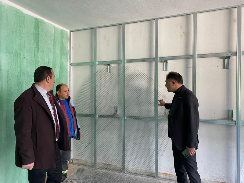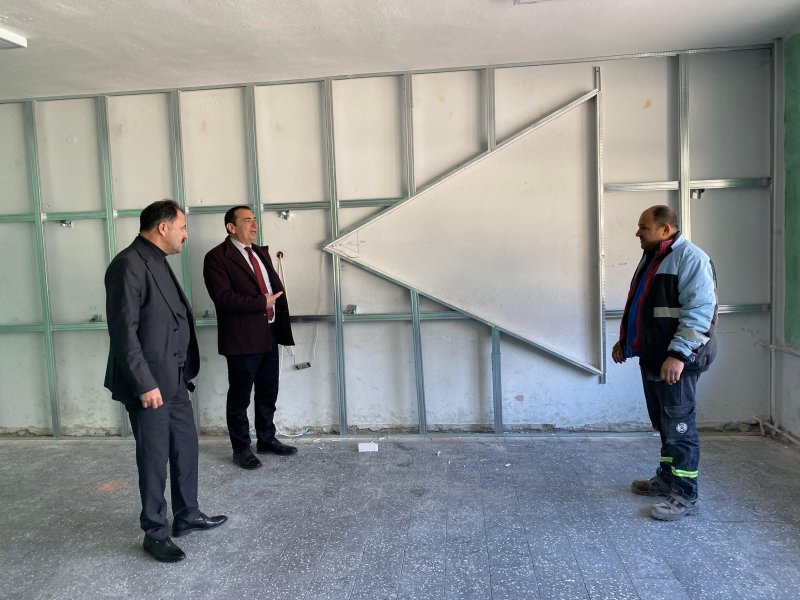 Belediye Başkanı Erkan Kara ve Başkan Yardımcısı İsmail Hakkı Gül’de Bilim Demirci binasına giderek inşaat ve düzenleme yerinde takip ederek çalışmalar ile ilgili bilgi aldılar.