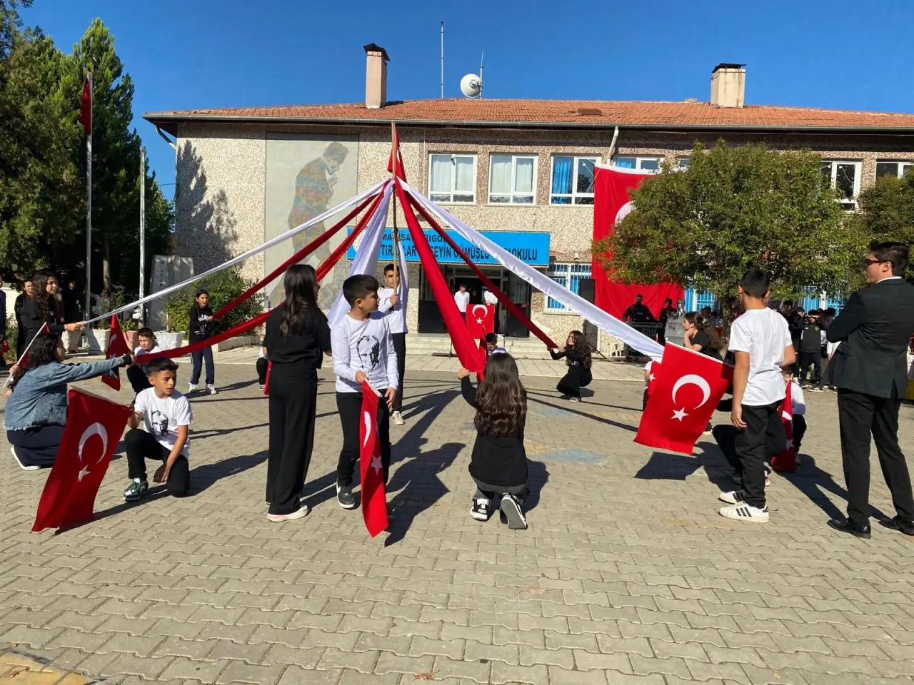 Sarıgöl Tırazlar Hüseyin Gümüşlü İlkokulu’nda da düzenlenen kutlama etkinliklerinde öğrencilerin sergilediği gösteriler ise izleyenlerden büyük alkış aldı.