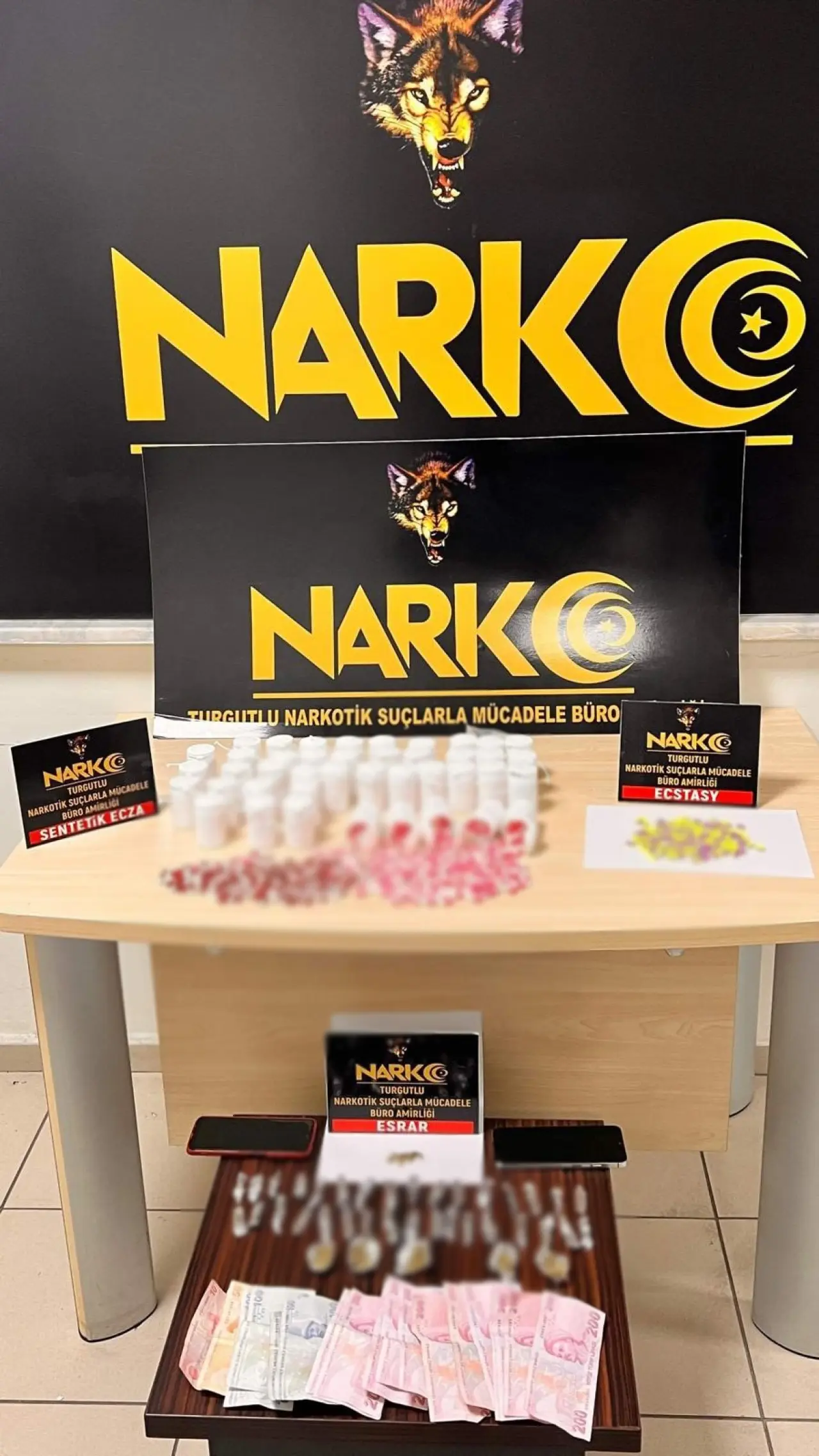 Çalışmalar kapsamında 14 şahsın üzerlerinde ve ikametlerinde yapılan aramalarda; 1 parça halinde 168 içimlik A4 peçeteye emdirilmiş sentetik kannabinoid maddesi, 2 bin 335 adet sentetik ecza hapı, 146 adet ecstasy hap, 38 parça halinde toplam 25,43 gram esrar maddesi ile uyuşturucu ticaretinden elde edildiği değerlendirilen 3 bin 100 TL para ele geçirildi.