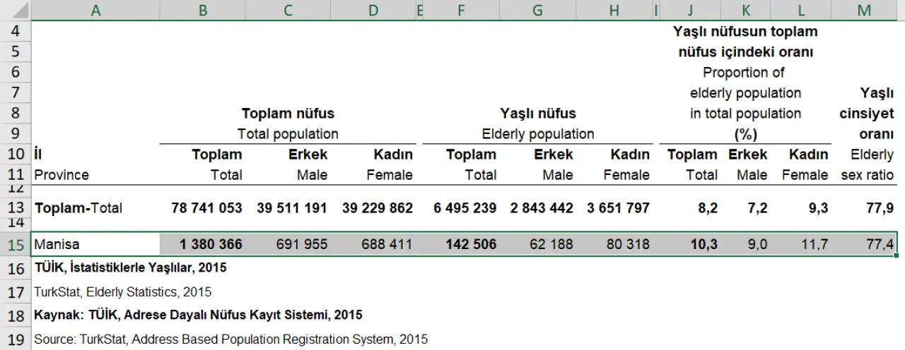 Doğum oranlarının düşmesi ve hayat standartlarının yükselmesiyle nüfustaki yaşlı oranı giderek artıyor. Manisa da nüfusu hızla yaşlanan iller arasında yer alıyor. Türkiye İstatistik Kurumu (TÜİK) verilerine göre, Manisa’da 65 yaş ve üzeri nüfus son 10 yılda yüzde 36 oranında artış gösterdi. 2015 yılında 142 bin olan yaşlı nüfus, 2024 yılında 194 bini aştı. Manisa’nın toplam nüfusu 2015 yılında 1 milyon 380 bin 366 iken, 2024 yılında 1 milyon 475 bin 353’e yükseldi. Aynı dönemde 65 yaş ve üzeri bireylerin sayısı 142 bin 506’dan 194 bin 22’ye çıkarak ciddi bir artış görüldü. Bu oranlara göre, Manisa’da yaşlı nüfusun toplam nüfusa oranı 2015 yılında yüzde 10,3 iken, 2024 yılında yüzde 13,2’ye yükselmiş oldu.