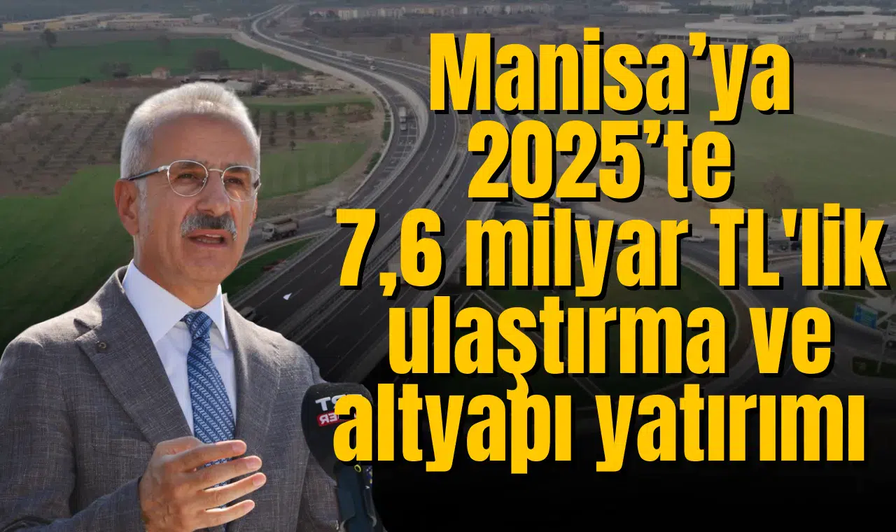 Ulaştırma ve Altyapı Bakanı Abdulkadir Uraloğlu tarafından paylaşılan verilere göre, Manisa 2025 yılında ulaştırma ve altyapı yatırımlarından önemli pay aldı. Demiryolu, karayolu ve haberleşme projelerini kapsayan yatırımların toplam tutarı 7,6 milyar TL’ye ulaştı.