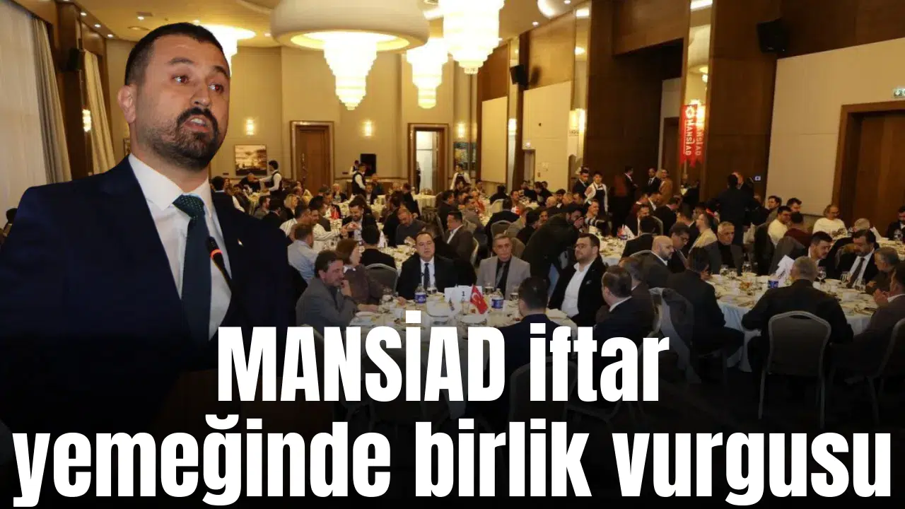 Manisa Sanayici ve İş İnsanları Derneği (MANSİAD) tarafından iftar programı düzenlendi. Hilton’da düzenlenen iftar programına AK Parti Manisa Milletvekili Tamer Akkal, CHP Manisa Milletvekili Selma Aliye Kavaf, Yunusemre Belediye Başkanı Semih Balaban, Şehzadeler Belediye Başkanı Hakan Şimşek, Muradiye Organize Sanayi Yönetim Kurulu Başkanı Osman Kıvırcık, MANSİAD Başkanı Abdullah Bilir, sanayiciler ve iş dünyası katıldı.