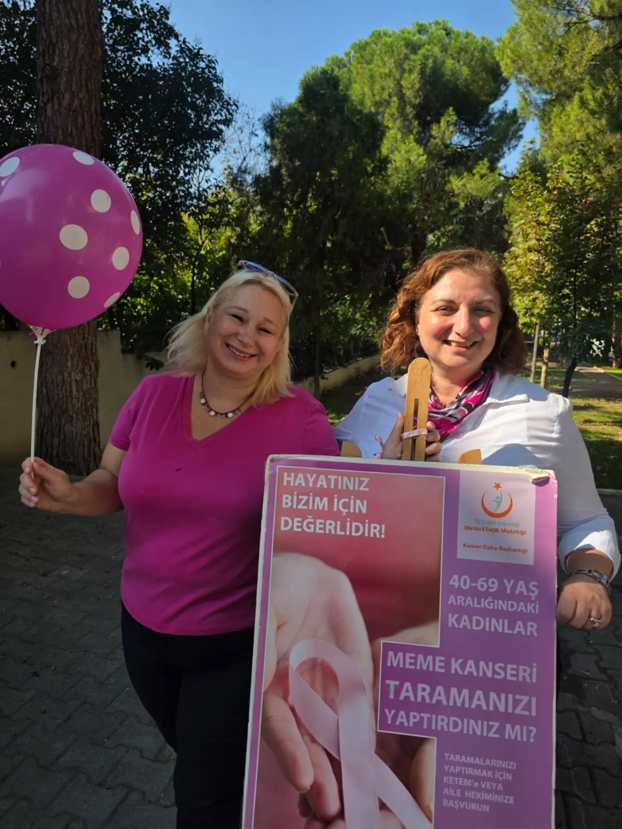 Yapılan açıklamada şu ifadelere yer verildi: “Tüm dünyada olduğu gibi ülkemizde de Ekim ayı, “Meme Kanseri Farkındalık Ayı” olarak kabul edilmektedir. Sivil toplum kuruluşları, akademisyenler ve medya organları iş birliği ile toplumda farkındalık oluşturacak etkinlikler gerçekleştirilmektedir. Bu çalışmaların amacı; toplumun meme kanserine neden olan risk faktörleri hakkında bilgilendirilmesi ve erken teşhis için düzenli taramaların zamanında yaptırılmasının teşvik edilmesidir. Meme kanseri, dünyada ve ülkemizde kadınlarda en sık görülen kanser türüdür. Dünya Sağlık Örgütü Uluslararası Kanser Araştırmaları Ajansı verilerine göre her yıl yaklaşık 2,3 milyon kadına meme kanseri teşhisi konmaktadır. Bu hastalık, kadınlarda yeni tanı konulan tüm kanserlerin %23,8’ini oluşturarak birinci sırada yer almaktadır. Ülkemizde ise yılda yaklaşık 27 bin kadına meme kanseri tanısı konmakta ve her 8 kadından biri, yaşamı boyunca bu hastalığa yakalanma riski taşımaktadır. Bu nedenle meme kanseri, erken teşhis ve bilinçlendirme yoluyla etkili bir şekilde mücadele edilmesi gereken önemli bir halk sağlığı sorunudur. Erken dönemde meme kanseri genellikle belirti vermez. Bu nedenle tarama büyük önem taşır. Meme kanserinin en sık rastlanan belirtisi; memede ağrısız, zamanla büyüyen bir yumrunun (kitlenin) ele gelmesi, hissedilmesidir. Ayrıca ele gelen kitle olsa da olmasa da aşağıdaki belirtiler meme kanserinin habercisi olabilir: Memede ele gelen kitle, Memenin şeklinde/boyutunda değişiklik, Meme cildinde portakal kabuğu görünümü, Meme ucundan gelen kanlı akıntı, Meme ucu veya derisinde çekilme, , Memede kızarıklık, kalınlaşma. Meme ucunda içe çöküntü, kabuklanma, Koltuk altında veya köprücük kemiği çevresinde şişlik veya kitle. Bu tür belirtilerin varlığında vakit kaybetmeden bir sağlık kuruluşuna başvurulmalıdır. Meme Kanseri Risk Faktörleri: Tütün ve tütün ürünleri kullanmak, Hiç doğum yapmamış veya geç doğum yapmış olmak, Hiç bebek emzirmemiş olmak. Menopoz sonrası iki yıldan uzun süreyle hormon ilacı kullanmak (HRT), Hareketsiz bir yaşam sürmek, Fazla kilolu ya da şişman olmak, Alkol kullanmak. Yoğun meme dokusuna sahip olmak, Erken adet görmek ve geç menapoza girmek, BRCA1, BRCA2 gibi belirli genlere sahip olmak, Göğüs kafesi bölgesine radyoterapi almış olmak. Sağlıklı yaşam alışkanlıkları geliştirerek bu risk faktörlerinin çoğu azaltılabilir. Özellikle düzenli fiziksel aktiviteler yaparak, dengeli beslenerek, tütün ve alkolden uzak durarak, ideal kiloyu koruyarak ve stresi kontrol altında tutarak meme kanseri riski azaltılabilir. Meme Kanserinde Erken Teşhisin Önemi: Meme kanseri ile mücadelede en etkili strateji, hastalığı erken evrede yakalamaktır. Ülke çapında yürütülen kanser tarama programlarıyla meme kanseri farkındalığını artırmak ve erken tanı oranlarını yükseltmek hedeflemektedir.