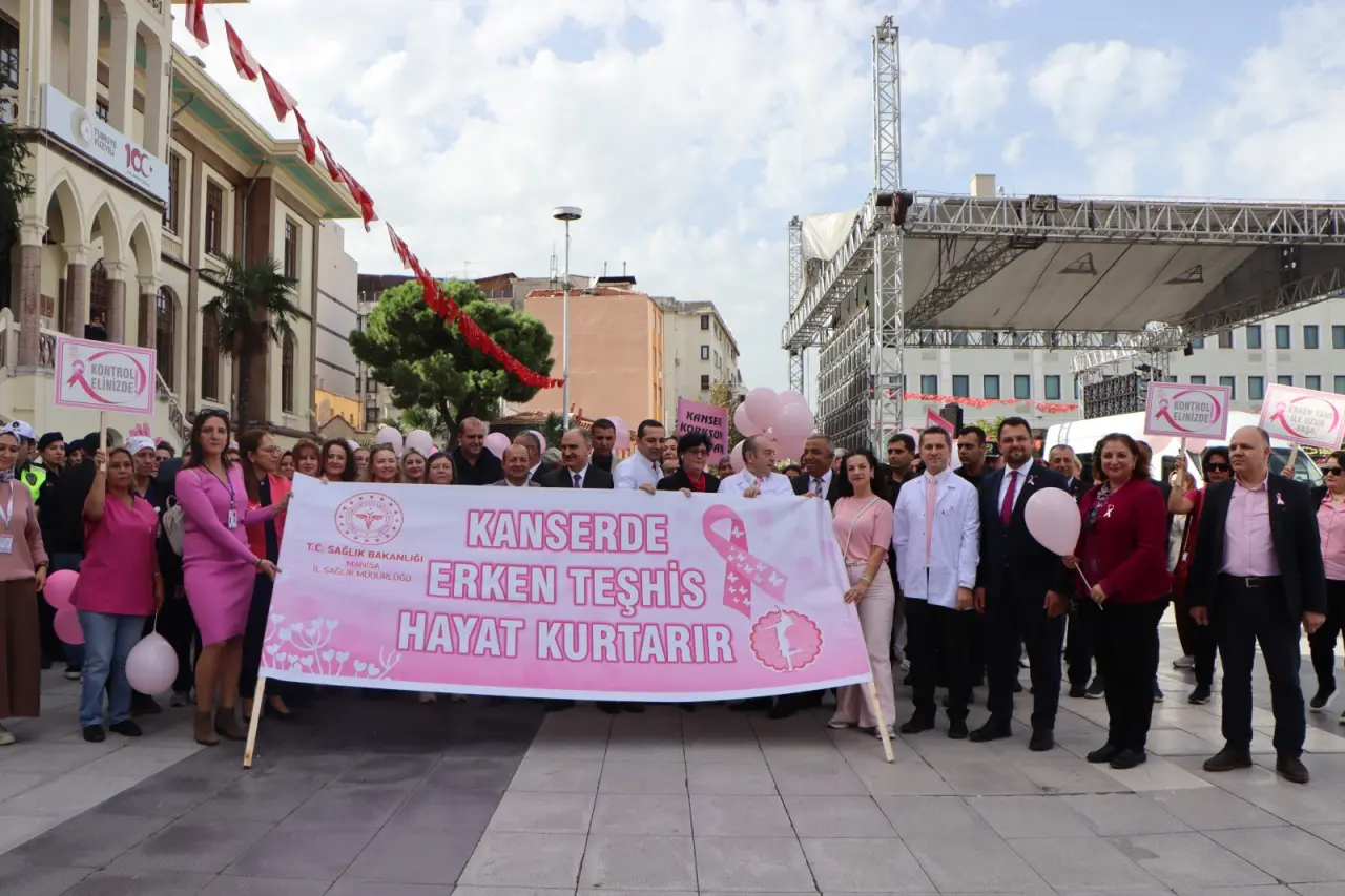 Manisa İl Sağlık Müdürlüğü, “Meme Kanseri Farkındalık Ayı” kapsamında farkındalık oluşturmak amacıyla özel bir yürüyüş düzenledi. Vatandaşlar, “Taramanı yaptır. Sağlıklı beslen, kansere karşı dur. Bana olmaz deme. Kanser korksun kadından” gibi pankart ve dövizlerle Hükümet Konağı’ndan Manolya Meydanı’na kadar yürüdü. Katılımın yoğun olduğu yürüyüşe, Manisa Valisi Vahdettin Özkan da eşi Dr. Ruhan Özkan ile birlikte katılarak destek verdi.