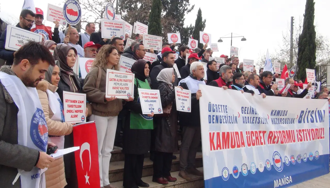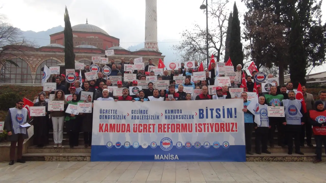 Memur-Sen Manisa İl Temsilcisi ve Eğitim Bir Sen Manisa 1 Nolu Şube Başkanı Ahmet Yasav, 2026 yılının memurlar için ilk maaş gününde Hatuniye Camii önünde basın açıklaması yaptı. Açıklamaya Memur-Sen’e bağlı sendikaların il başkanları, temsilcileri ve çok sayıda üye destek verdi.