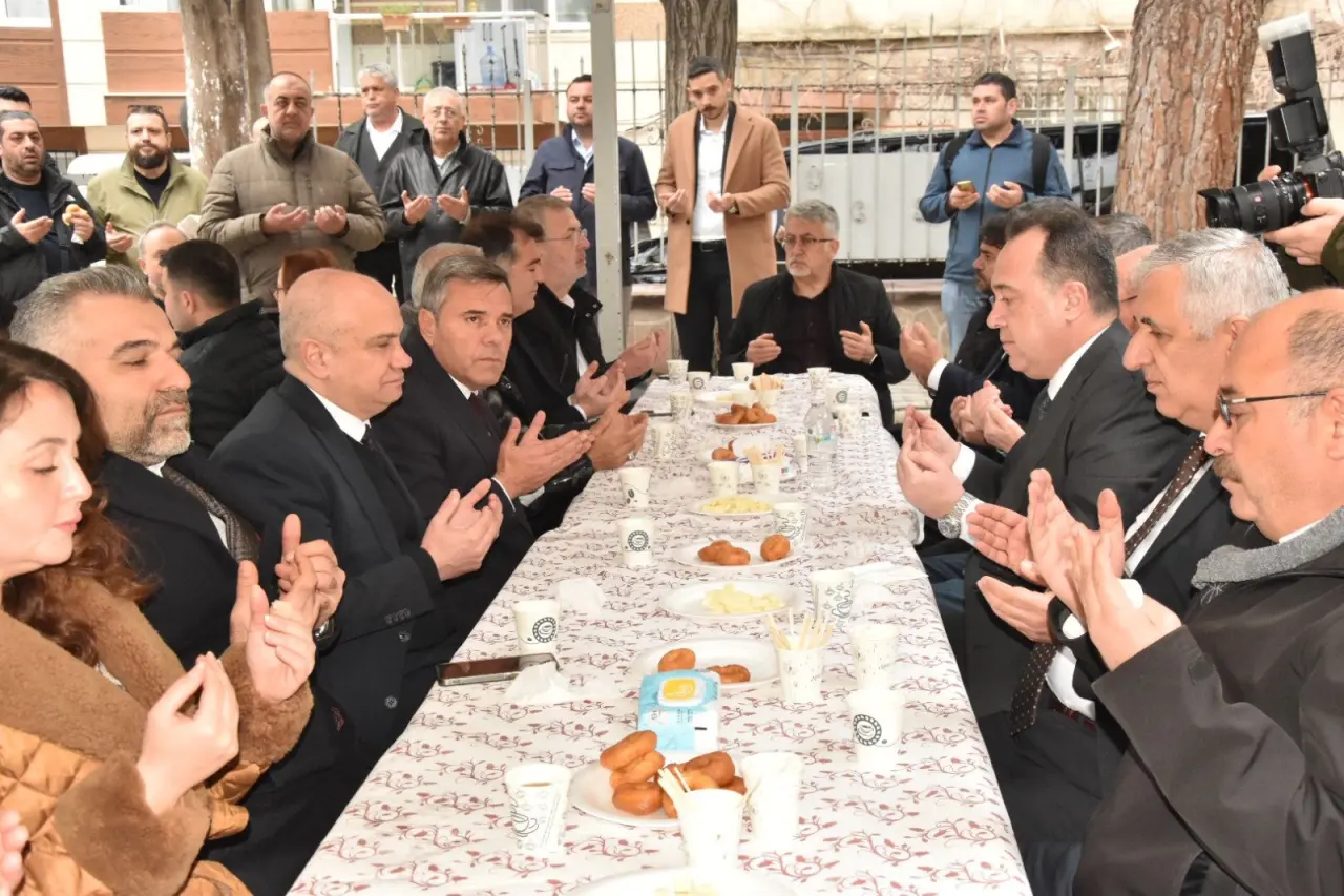 Manisa Büyükşehir Belediye Meclisi AK Parti Grup Başkanvekili Berk Mersinli’nin annesi rahmetli Mebrure Mersinli için lokma hayrı gerçekleştirildi. Kuyualan Camii bahçesinde düzenlenen programa Manisa Büyükşehir Belediye Başkanı Besim Dutlulu, Genel Sekreter Burak Deste, Manisa MASKİ Genel Müdürü Ali Kılıç, Yunusemre Belediye Başkanı Semih Balaban, Manisa İl Sağlık Müdürü Mehmet Fatih Zeren, Manisa Şoförler ve Otomobilciler Esnaf Odası Başkanı Cahit Güden, AK Parti Yunusemre İlçe Başkanı İlkcan Durmaz, Manisa Bitlisliler Derneği Başkanı Cevdet Çiçek, MHP Yunusemre İlçe Başkanı Bülent Kovancıoğlu, başkan danışmanları, belediye meclis üyeleri, sivil toplumu kuruluşu temsilcileri katıldı. Kur’an-ı Kerim okundu, dua edildi. Mersinli ailesi hayra katılan herkese teşekkür etti.
