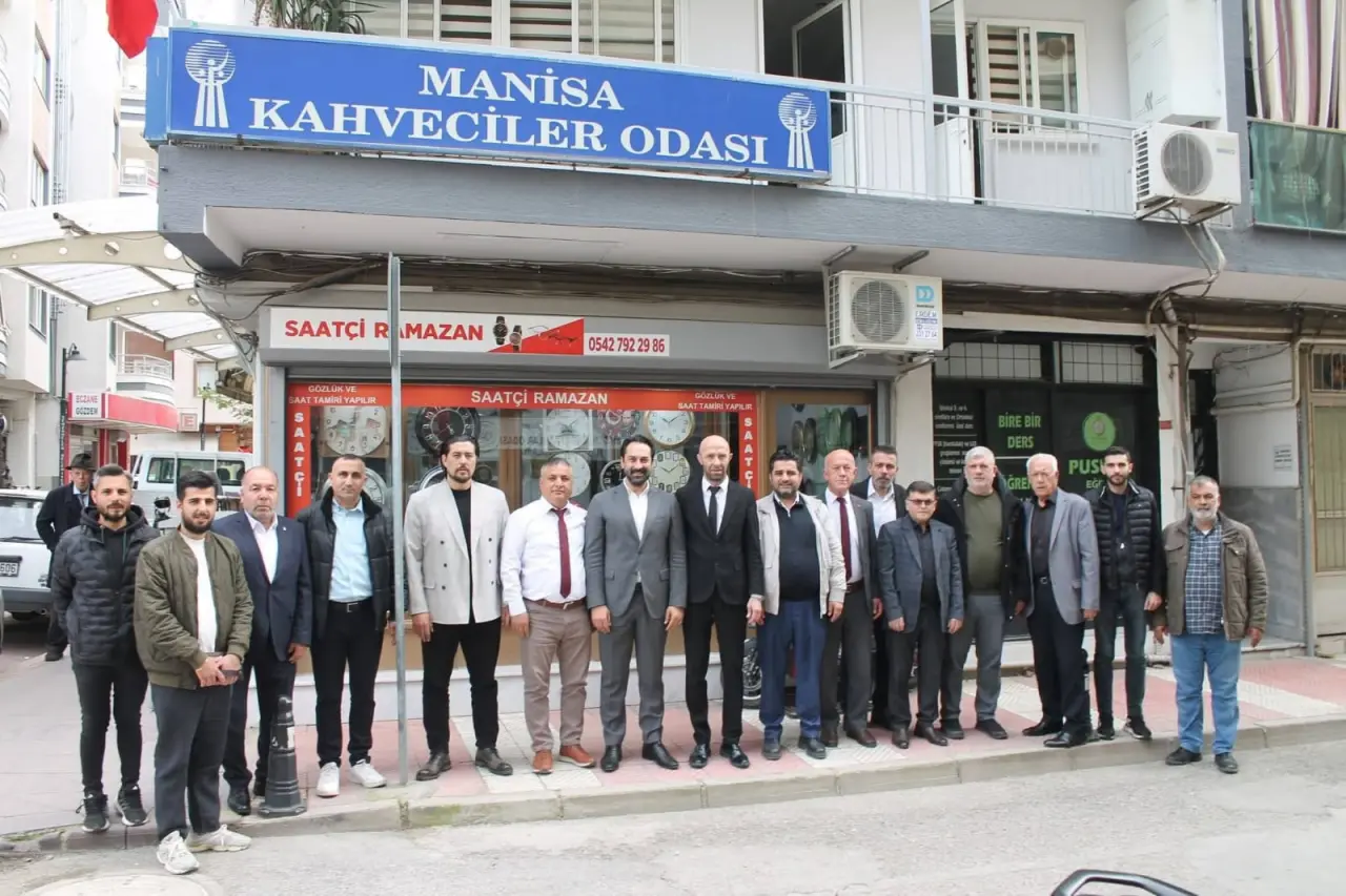 "AK Parti MKYK Üyesi ve Manisa Milletvekilimiz Sayın Ahmet Mücahit Arınç, Ak Parti Şehzadeler İlçe Başkanı Sayın Ahmet Nalband ve Yönetim kurulu üyeleri ile beraber, Kahveciler Odamıza nezaket ziyaretinde bulunmuşlardır.