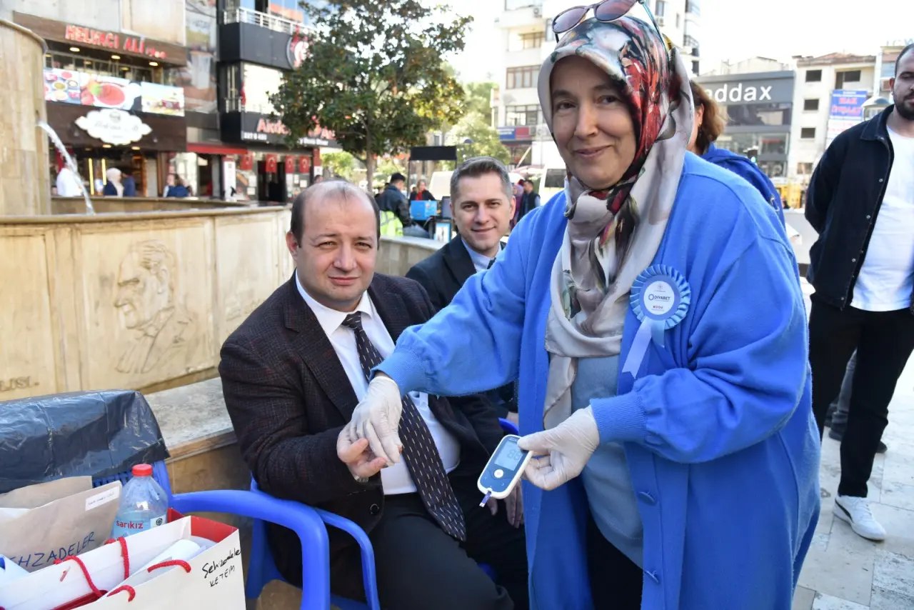 Manisa il Sağlık Müdürlüğü Şehzadeler İlçe Sağlık Müdürlüğü, Dünya Diyabet Günü kapsamında stant açtı. 15 Temmuz Demokrasi Meydanı'nda açılan standı Manisa Sağlık İl Müdürü Uzm. Dr. Mehmet Fatih Zeren, Halk Sağlığı Hizmetleri Başkanı Uzm. Dr. Metin Gümüş ve Başkan Yardımcısı Uzm. Dr. Ümit Atman, Şehzadeler İlçe Sağlık Müdürü Uzm. Dr. Müjde İlgün ziyaret etti. Stantta kan şekeri ölçümü ve diyabet hakkında bilgilendirmeler yapıldı.