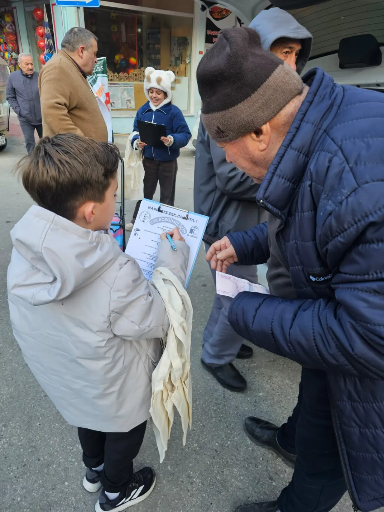 Yapılan açıklamada şu ifadelere yer verildi: “Okulumuz 4 yıldır yürüttüğü Eko Okullar projesi ile öğrenci ve velilerimizde büyük farkındalıklar oluşturmayı basardı. Eko Tim öğrencilerimiz çevre bilinci ile ilgili çeşitli etkinlikler düzenleyerek tüm okulun daha tasarruflu ve bilinçli olmasını hedefliyor. Bu etkinliğimiz ise tek kullanımlık plastik poşetlere karşı halkımızı bilinçlendirmek ve onları bez çanta kullanımına teşvik etmek. Eko Tim öğrencilerimiz uygulayacakları anket karşılığında soruları cevaplayan kişilere bez çanta hediye edecek. Böylelikle atıklar azalacak ve temiz bir dünya hepimizin olacak.”