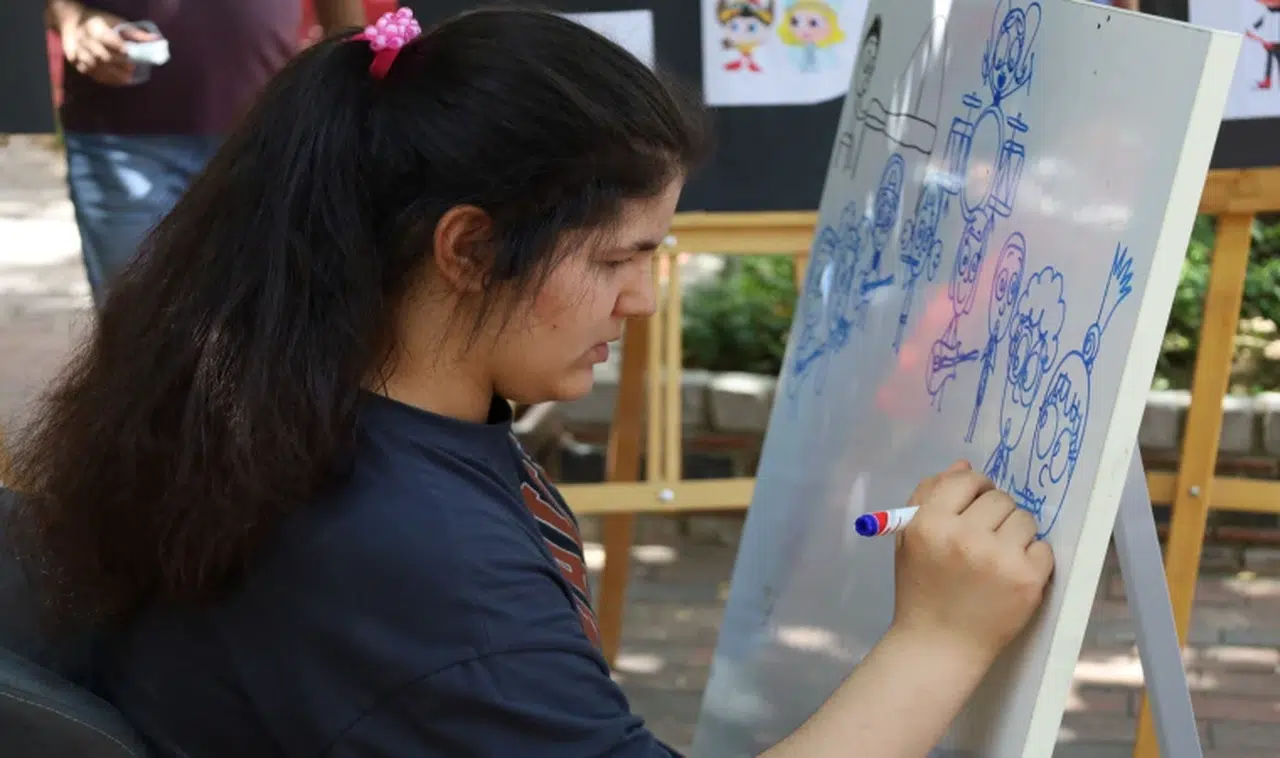 Turgutlu Mehmet Akif Ersoy Ortaokulu'nda eğitim öğretim gören otizm hastası Nisanur Saratar, renkli kalemlerle çizdiği resimlerle büyük beğeni topluyor. Özellikle müzik eşliğinde kent meydanında resimler yapan Nisanur'u çevredeki vatandaşlarla da ilgiyle izliyor. Turgutlu ilçesinde bulunan sergi alanında İlçe Milli Eğitim Müdürlüğünün katkılarıyla bir de resim sergisi açan Nisanur Saratar, resim yaparken çok mutlu olduğunu söyledi. Günün büyük bir bölümünü resim yaparak geçiren Nisanur, sergide vatandaşlar için özel çizimler yaptı. Özel eğitim öğretmeni Mehmet Süer Nisanur'un çok yetenekli bir öğrenci olduğunu ve kendi dünyasını resim çizerek anlattığını söyledi.
