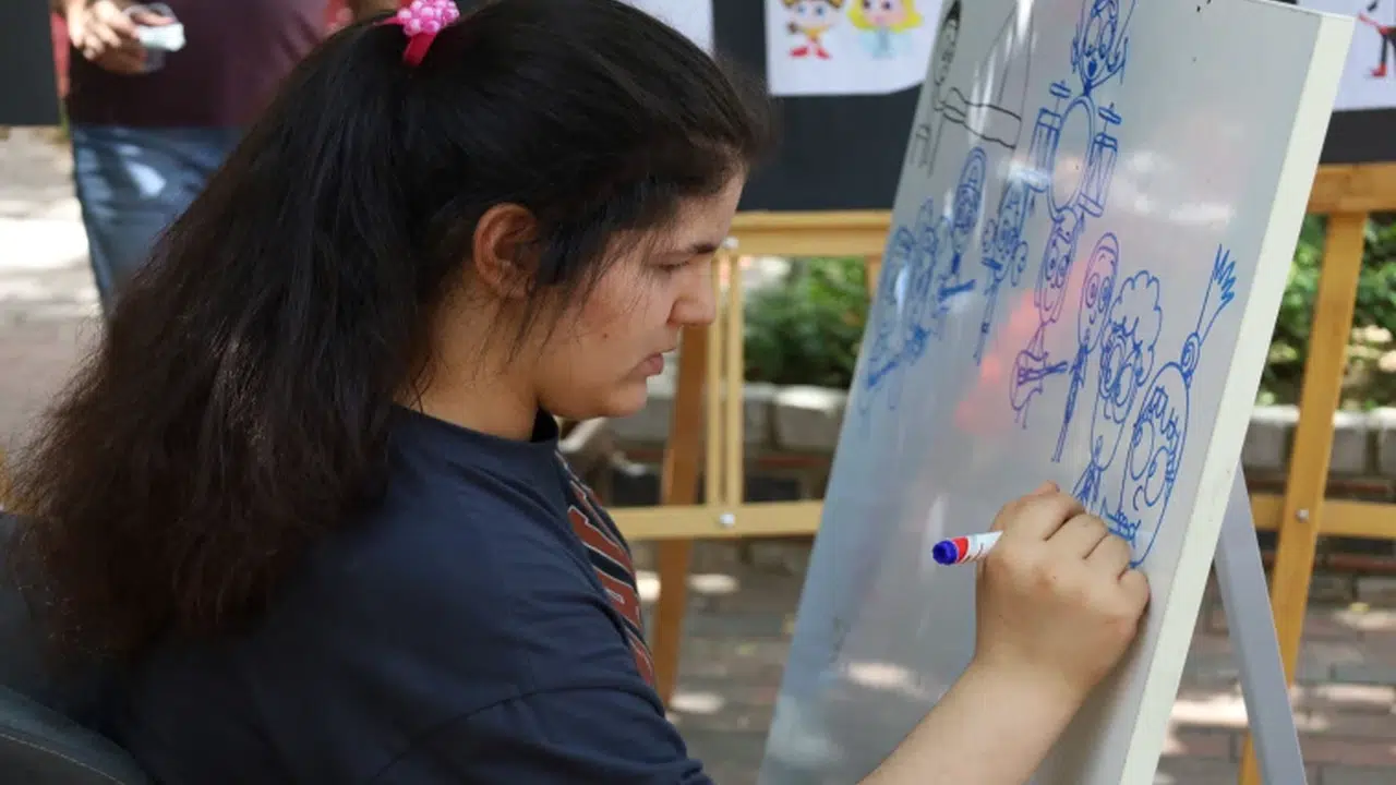 Manisa'nın Turgutlu ilçesinde yaşayan 14 yaşındaki otizm hastası Nisanur Saratar, müzik eşliğinde yaptığı resimlerle hem duygularını anlatıyor hem de yeteneklerini sergiliyor.