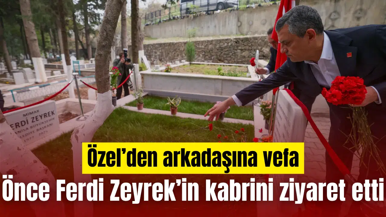 CHP Manisa 39. Olağan İl Kongresine katılmak üzere Manisa'ya gelen CHP Genel Başkanı Özgür Özel, CHP Manisa'nın son seçilmiş il başkanı olan Manisa Büyükşehir Belediye Başkanı merhum Ferde Zeyrek'i mezarı başında ziyaret etti. Özel'e Manisa Büyükşehir Belediye Başkanı Besim Dutlulu, Genel Sekreter Burak Deste, genel sekreter yardımcıları eşlik etti. Özel, Ferdi Zeyrek'in mezarına karanfil bıraktı.