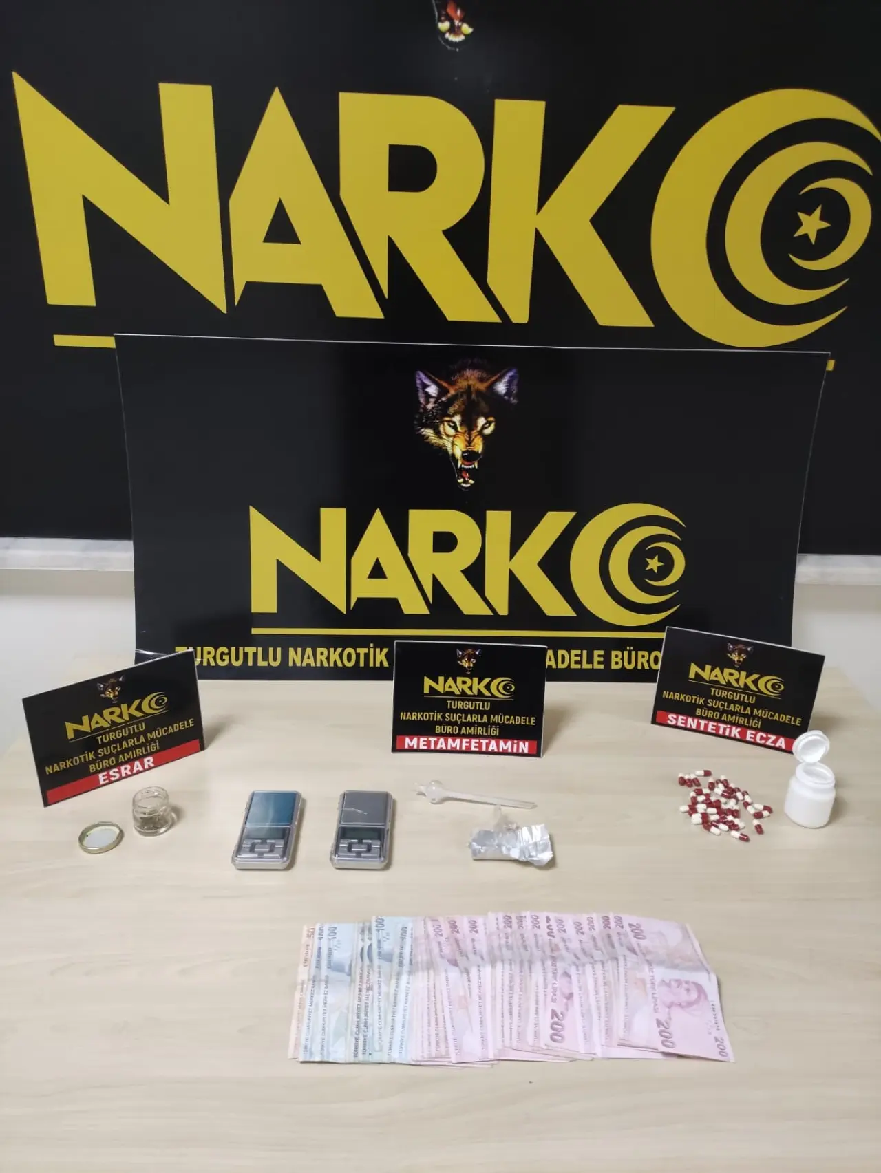 Turgutlu ilçesinde narkotik ekiplerinin yürüttüğü çalışmalar kapsamında uyuşturucu ticareti yaptığı tespit edilen H.İ.K. (37)'nin ikamet ve üst aramasında 37 adet sentetik ecza, 0.60 gram metamfetamin, 0.50 gram esrar, 2 hassas terazi ve 6 bin 950 TL ele geçirildi.