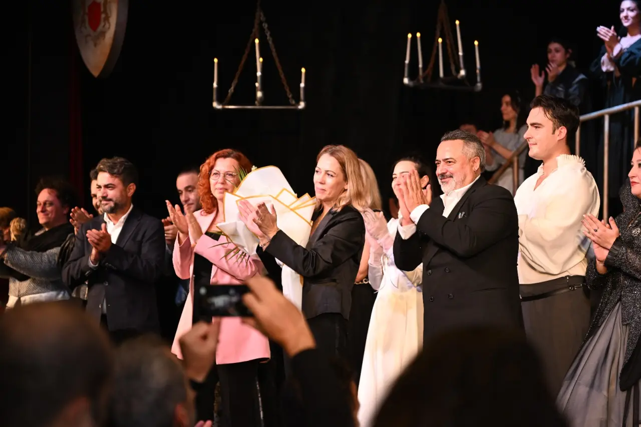 Oyunun sonunda merhum başkan Ferdi Zeyrek’in eşi Nurcan Zeyrek ve tüm protokol üyeleri sahneye çıkarak oyuncuları kutladı. Sergiledikleri başarıdan dolayı tüm oyuncuları ve Kubilay Penbeklioğlu’nu kutlayan Manisa Büyükşehir Belediyesi Genel Sekreter Yardımcısı Ulaş Aydın, oyunculara başarılarının devamını diledi.