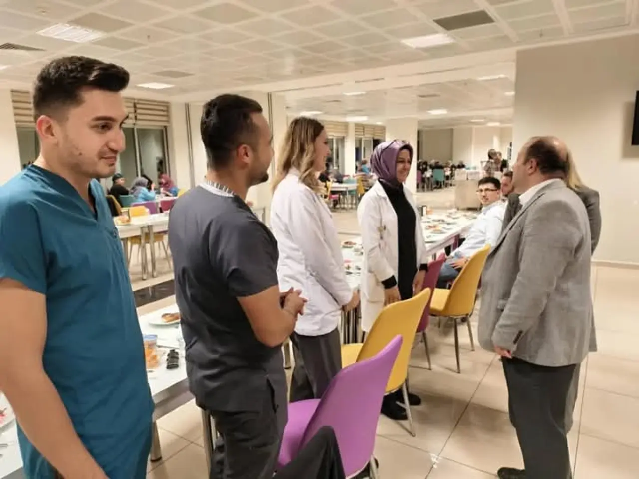 Hastane yönetimi ve nöbette görev yapan sağlık personeliyle aynı sofrayı paylaşan İl Müdürümüz, fedakârca görev yapan çalışanlara teşekkür ederek dayanışma ve kardeşlik vurgusunda bulundu. Ramazan’ın paylaşma, dayanışma ve gönül birliği anlayışıyla gerçekleşen iftar programı, samimi bir atmosferde tamamlandı.