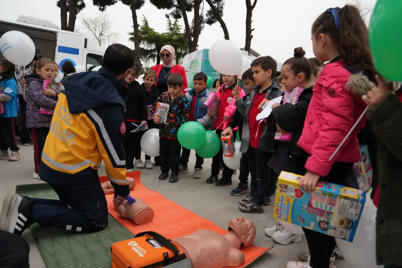 Program kapsamında öğrencilere ambulans ve doktor bebek oyuncakları hediye edilirken, projeye öncülük eden sınıf öğretmeni Hasibe Güzel’e de İl Sağlık Müdürü Uzm. Dr. Mehmet Fatih Zeren tarafından çiçek takdim edildi.