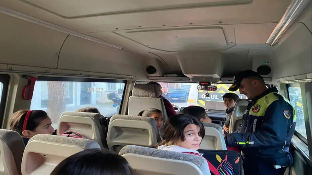 Jandarma ekipleri, durdurduğu servis minibüslerinde yangın tüpü başta olmak üzere evrak, araç ve emniyet kemeri kontrolü yaparak servis şoförlerini trafik kurallarına uymaları ve öğrencilerin can güvenliğini sağlamaları konusunda uyardı.İHA