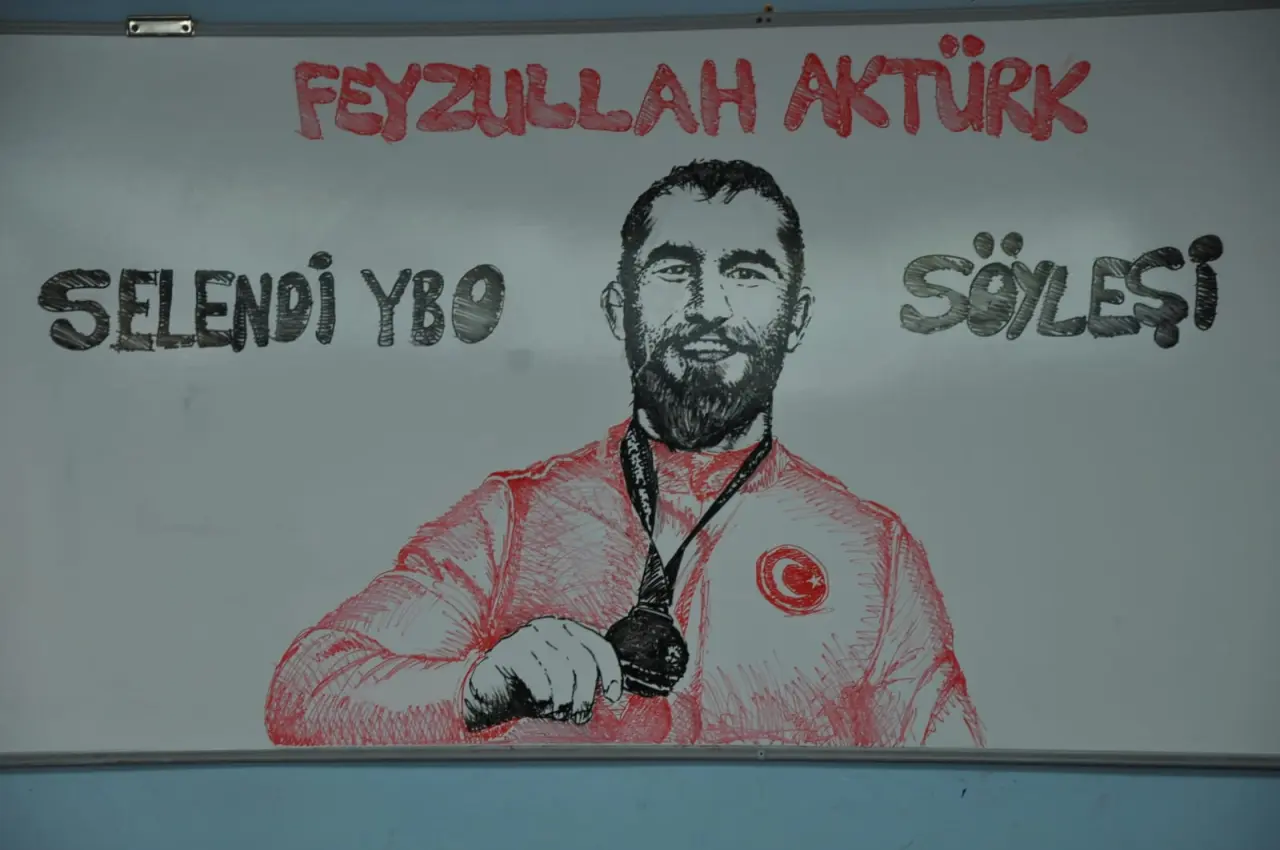 Henüz dokuz yaşında iken güreşe Akhisar'da bir düğünde başladığını belirten Aktürk, her gencin gelecekleri ile ilgili planlar yapması ve kararlar alması gerektiğini anlattı. Aktürk, “Sizler bizim geleceğimizsiniz. Yarın sizler de bizim gibi gelecek nesillere bu tür söyleşiler yapabilirsiniz. Bunun için başarılı olmamız lazım. Bizler de sizlerin geçtiği yollardan geçtik. Başarının sırrı disiplin. İnşallah güzel günler, hayırlı yarınlar sizlerin olur” diye konuştu. Öğrencilerin sorularını da cevaplayan Aktürk, kazandığı karakucak güreş yarışmasında dünya şampiyonu olduğu kemer ve madalya eşliğinde öğrencilerle fotoğraf çektirdi. Program sonunda Milli güreşçi Feyzullah Aktürk’e, Milli Eğitim Müdürü Ahmet Ataşman ve Okul Müdürü Muhsin Kasap tarafindan bir plaket ile kendisinin yağlı boya tablo hediye takdim edildi.
