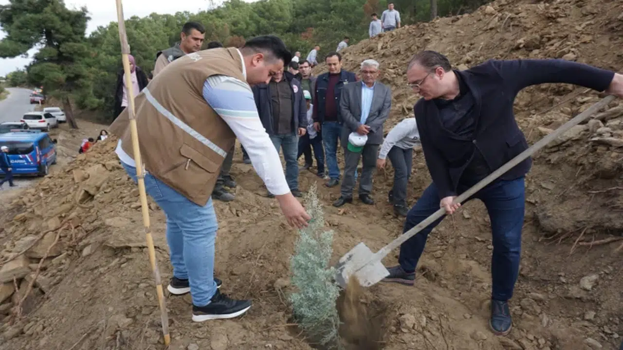 Manisa'nın Sarıgöl ilçesinde 11 Kasım Milli Ağaçlandırma Günü dolayısıyla 400 fidan daha önce yanan ormanlık alanda toprakla buluştu.