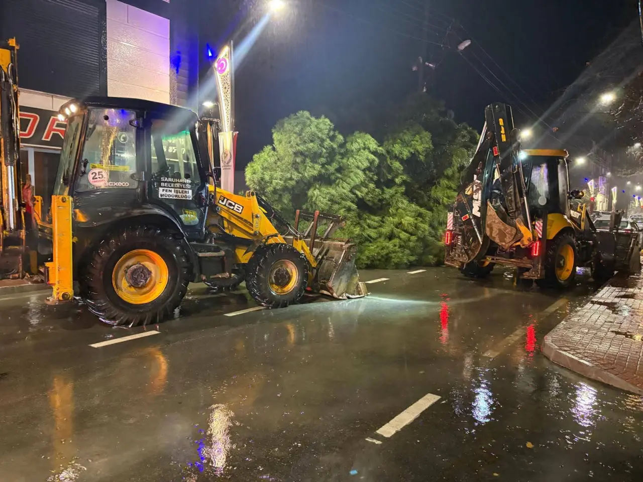 Saruhanlı ilçesinde dün gece etkili olan şiddetli yağış ve aşırı rüzgâr nedeniyle meydana gelen olumsuzluklara, Saruhanlı Belediye Başkanı Ekrem Cıllı’nın talimatları doğrultusunda belediye ekipleri tarafından hızla müdahale edildi. Fırtınanın ardından sahaya inen Başkan Cıllı, yürütülen çalışmaları yerinde inceleyerek süreci bizzat koordine etti. İlçe genelinde devrilen ağaçlar kısa sürede kaldırılırken, su taşkınlarının yaşandığı bölgelerde ekipler gece geç saatlere kadar aralıksız görev yaptı. Belediye Başkanı Ekrem Cıllı, yaptığı açıklamada, vatandaşların can ve mal güvenliğinin öncelikleri olduğunu belirterek, “Vatandaşlarımızın can ve mal güvenliği her şeyden önce gelir. Bu anlayışla tüm imkânlarımızla sahadayız. Saruhanlı Belediyesi olarak her koşulda hemşerilerimizin yanında olmaya devam ediyoruz.” ifadelerini kullandı.