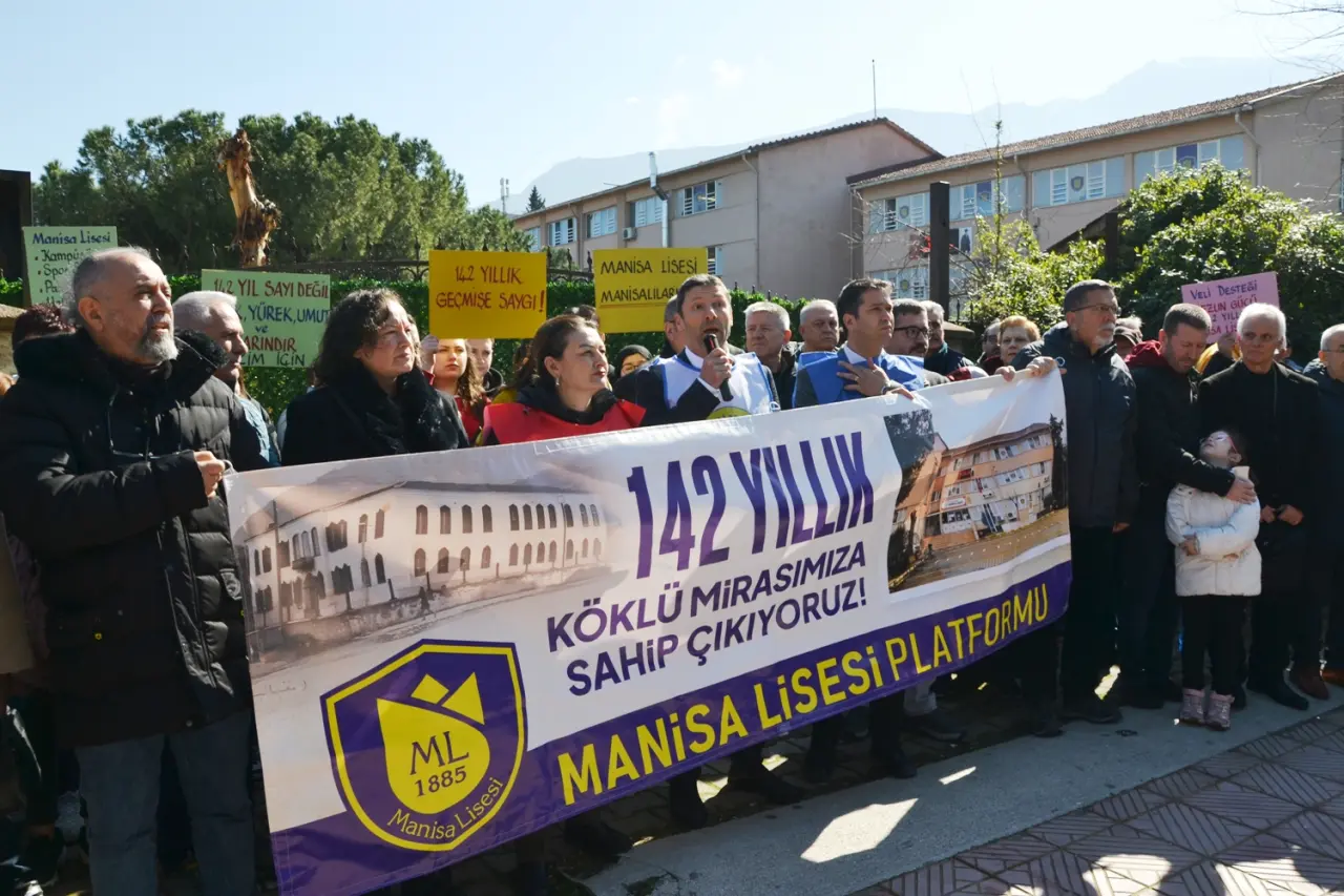 Eğitim Sen Manisa Şube Başkanı Mehmet Ramazan, “okulun önündeyiz, toplandık. Çünkü 142 yıllık eğitim çınarımız olan Manisa Lisesi'nin geleceği ile ilgili kaygılarımız var. Kaygılar taşıyoruz. Neden bu kaygıları taşıyoruz? Çünkü benzer akıbete maruz kalmış okullarımızın durumu halen netleşmiş değil.