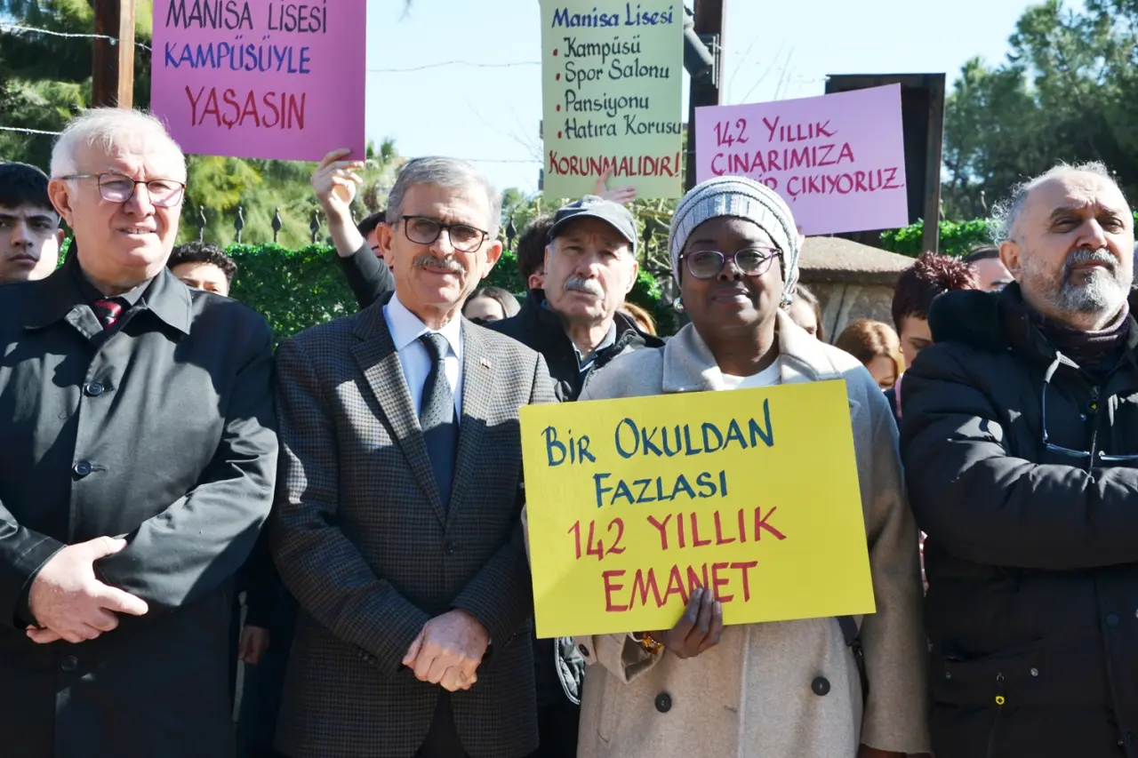 Manisa’nın en köklü okullarından biri olan 142 yıllık Manisa Lisesi’ne hem Milli Eğitim Bakanlığı hem de Manisa Büyükşehir Belediyesi tarafından yıkılıp otopark ve yeni bir lise yapılması planlanıyor. Manisa Lisesi Platformu, Manisa Lisesi önünde “142 yıllık köklü mirasımıza sahip çıkıyoruz” sloganıyla eylem gerçekleştirdi.