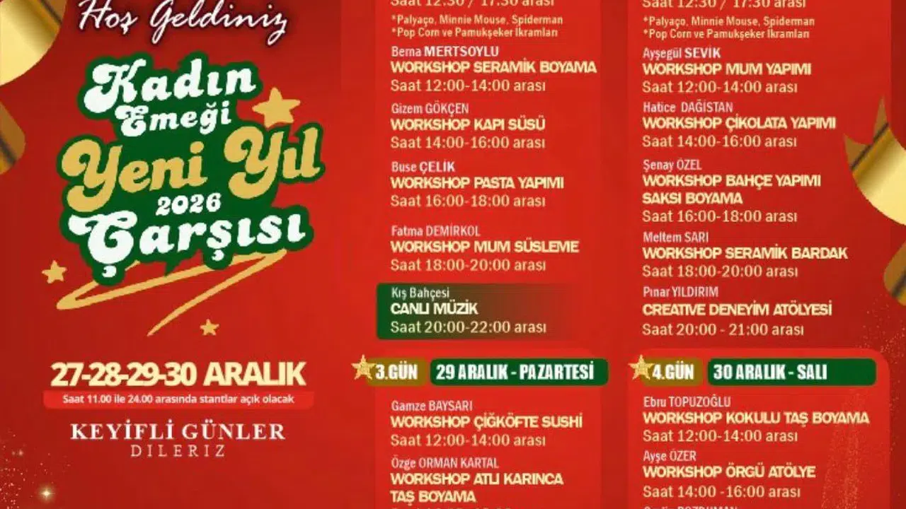 Kadın Emeği Yeni Yıl Çarşısı yalnızca bir alışveriş alanı değil; aynı zamanda eğlence, üretim ve paylaşımın bir araya geldiği sosyal bir buluşma noktası olacak.