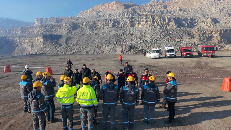 Yaklaşık 200 kişinin görev aldığı tatbikatta ekipler, meydana gelen heyalanda toprak altında kalan iş makinelerini dedektör ve köpekler ile yerlerini tespit ederek, yaralılara ilk müdaheleleri Umke ekipleri tarafından yapıldı. Sedyeler ile ambulansa taşınarak, maden sahasında kurulan çadır hastaneye ulaştırılarak yaralılara gereken müdahaleler yapıldı.