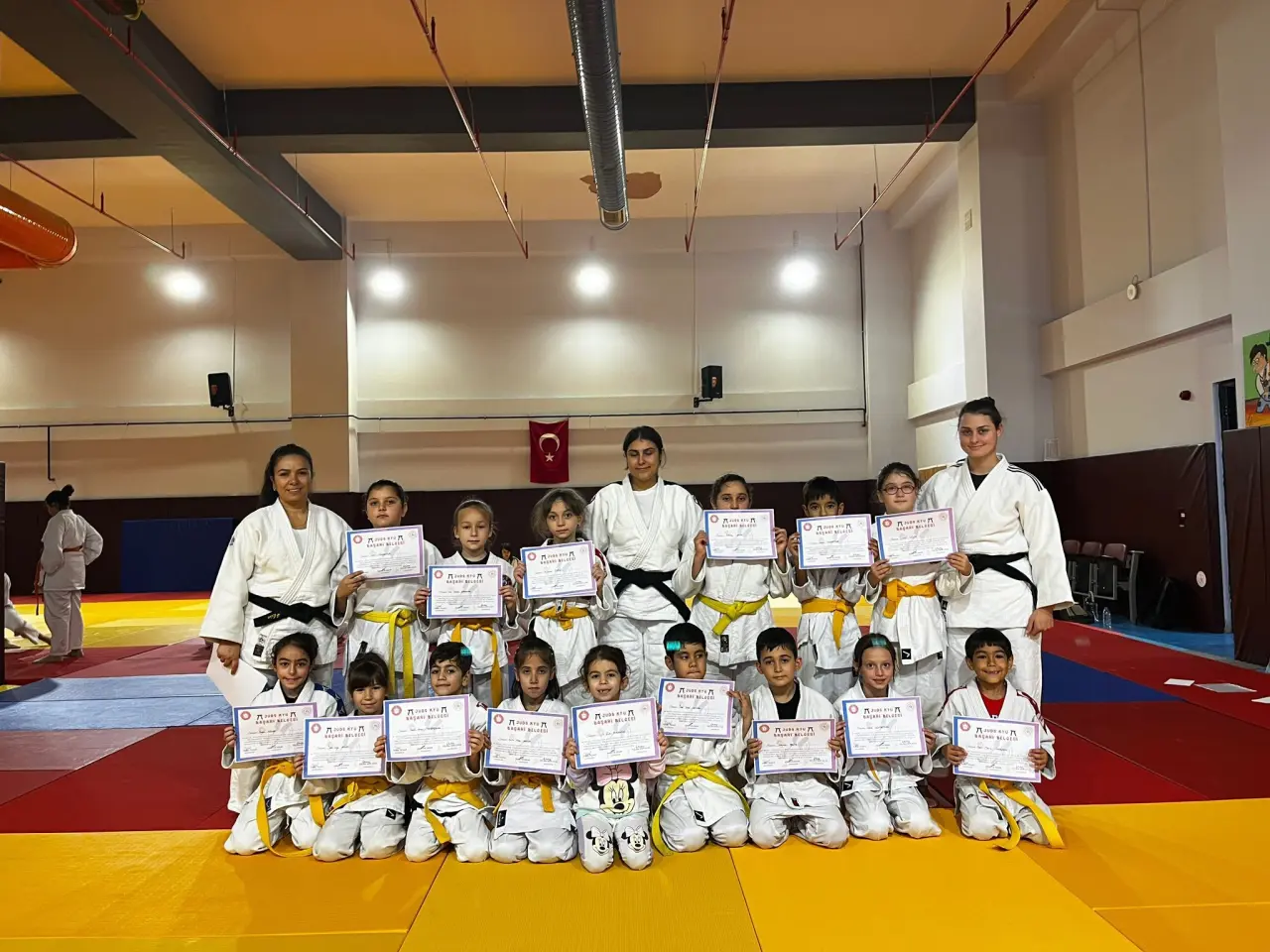 Etkinlik sonunda toplu hatıra fotoğrafı çekilerek, kemer atlayan judocuların başarısı kutlandı.
