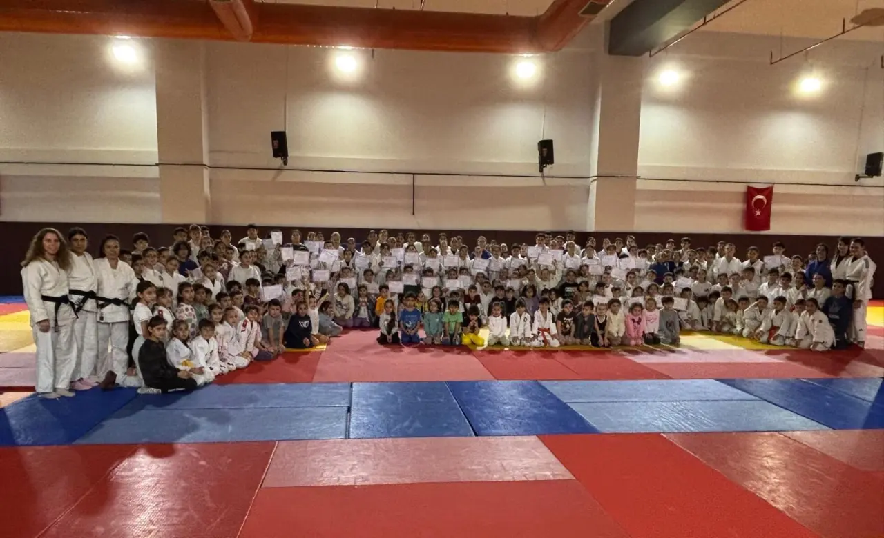 Sınavı başarıyla tamamlayan judocular, bir üst kemere terfi etmenin mutluluğunu yaşarken, aileleri de tribünlerden sporcuları destekledi.