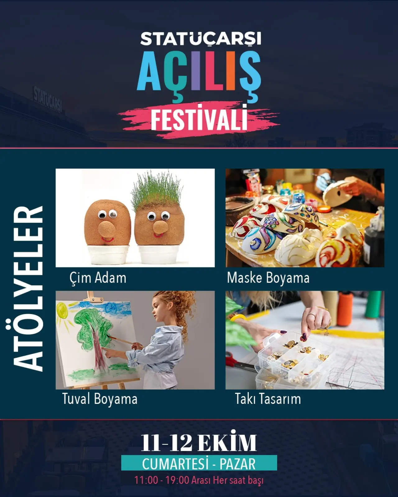 Etkinlik alanında kurulacak atölyelerde ise çocuklar, maske yapımı, çim adam üretimi, tuval boyama ve takı tasarımı gibi aktivitelerle yeteneklerini geliştirme imkânı bulacak.