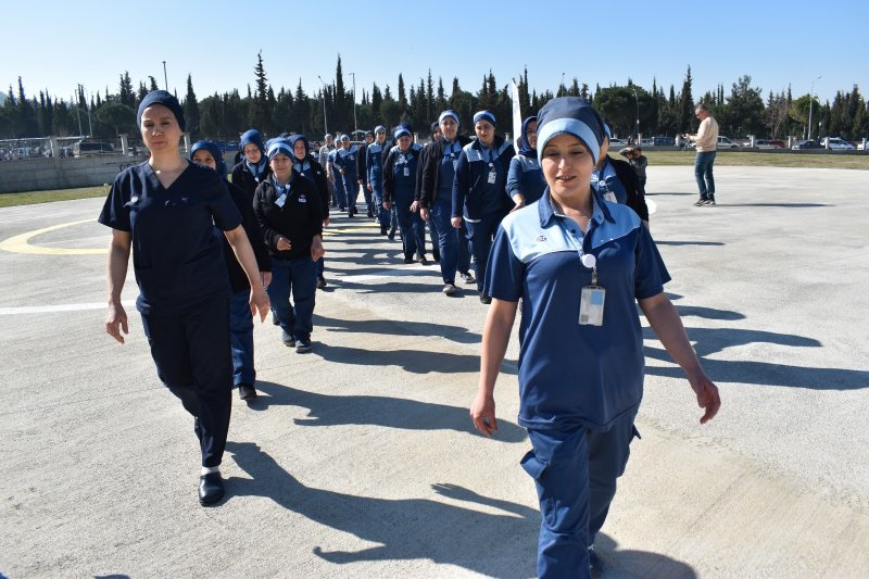 Manisa’da 8 Mart Kadınlar Gününde Manisa Şehir Hastanesi’nde temizlik işinde çalışan kadınlar anlamlı ve farklı bir etkinlik gerçekleştirdi. Kadınlar Şehir Hastanesi Heliport alanında el ele vererek ‘8’ işareti yaptı, hilal oldu.