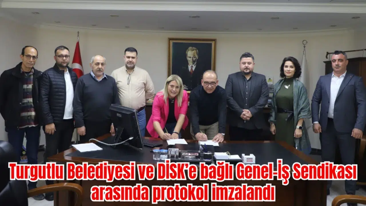 Turgutlu Belediyesi ile DİSK’e bağlı Genel-İş Sendikası 7 No’lu Şubesi arasında kadrolu çalışan personelin 2024 yılında alacağı maaşa yönelik protokol imzalandı. Protokole göre kadrolu çalışanların ücretlerine yüzde 68 oranında zam uygulanarak yan haklar dahil aylık en düşük ücret 38 bin 300 TL olarak belirlendi. Protokol, Turgutlu Belediye Başkanı Çetin Akın, Genel-İş 7 No’lu Şube Başkanı Özgür Genç arasında imzalandı.