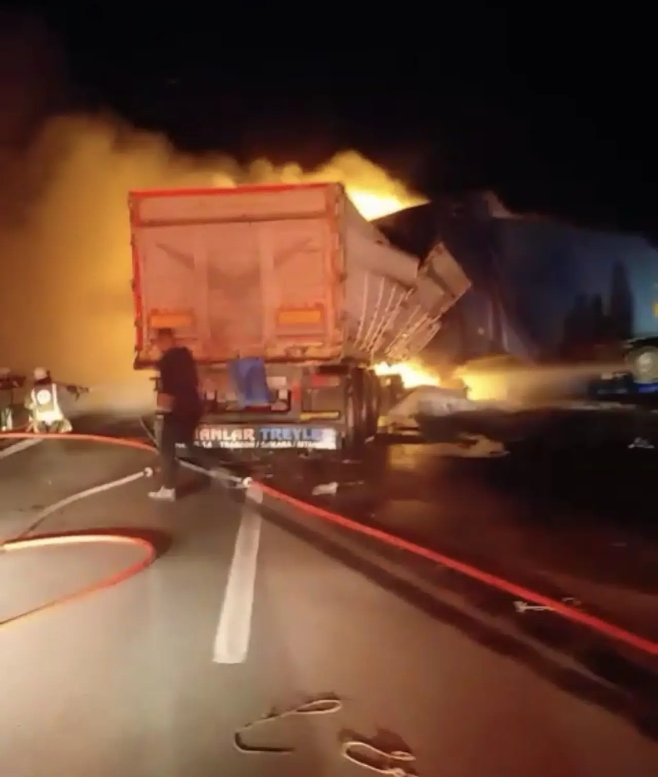 Kaza, gece saatlerinde İzmir-İstanbul Otoyolu’nun İzmir istikametinde, Turgutlu gişeleri Akalan mevkiinde meydana geldi. Edinilen bilgiye göre, aynı yönde seyir halinde olan iki tır henüz belirlenemeyen bir nedenle çarpıştı. Çarpışmanın hemen ardından tırlardan birinde başlayan yangın, kısa sürede diğer tıra da sıçradı.