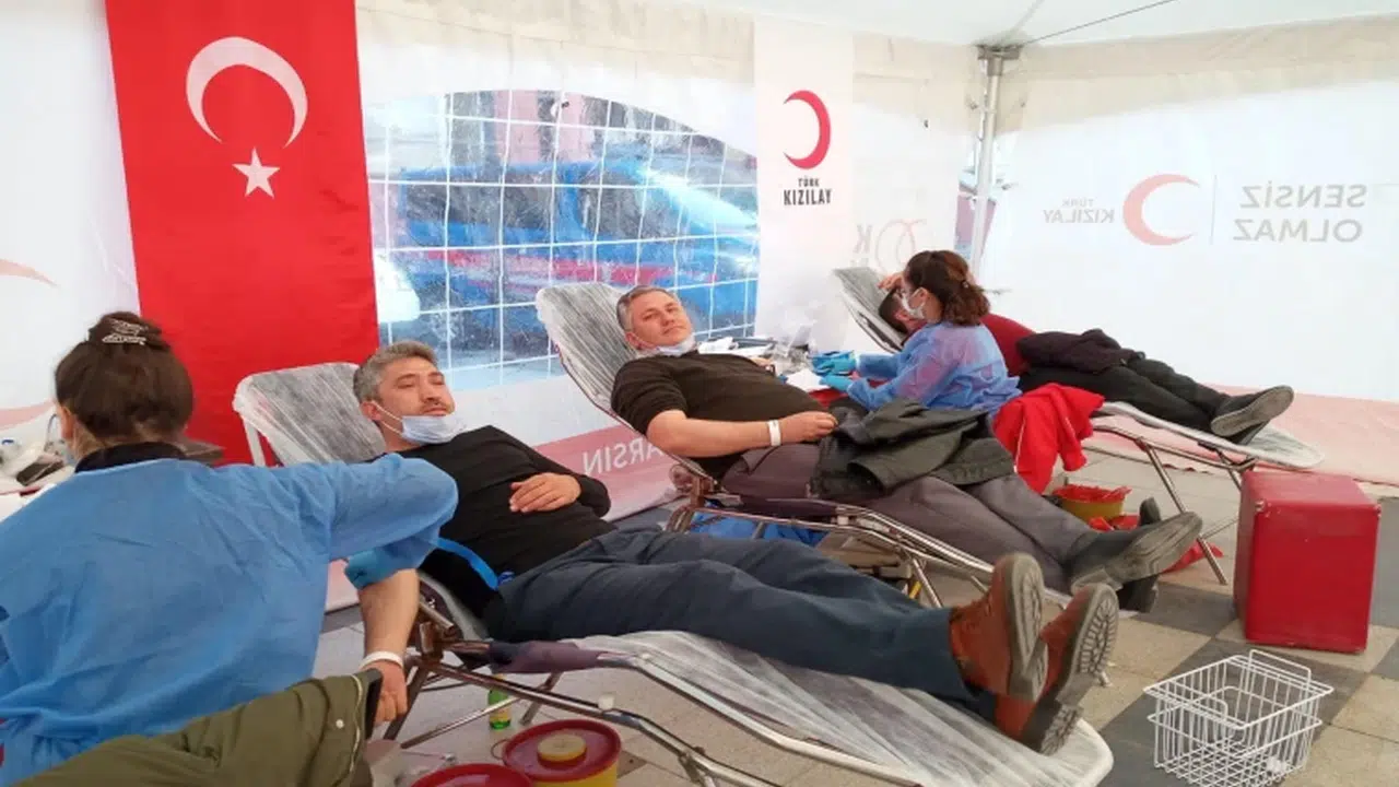 Formları dolduran ve kan bağışına uygun olduğu tespit edilen vatandaşlar sırayla kan bağışında bulundu.