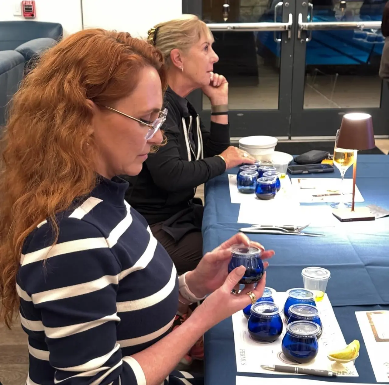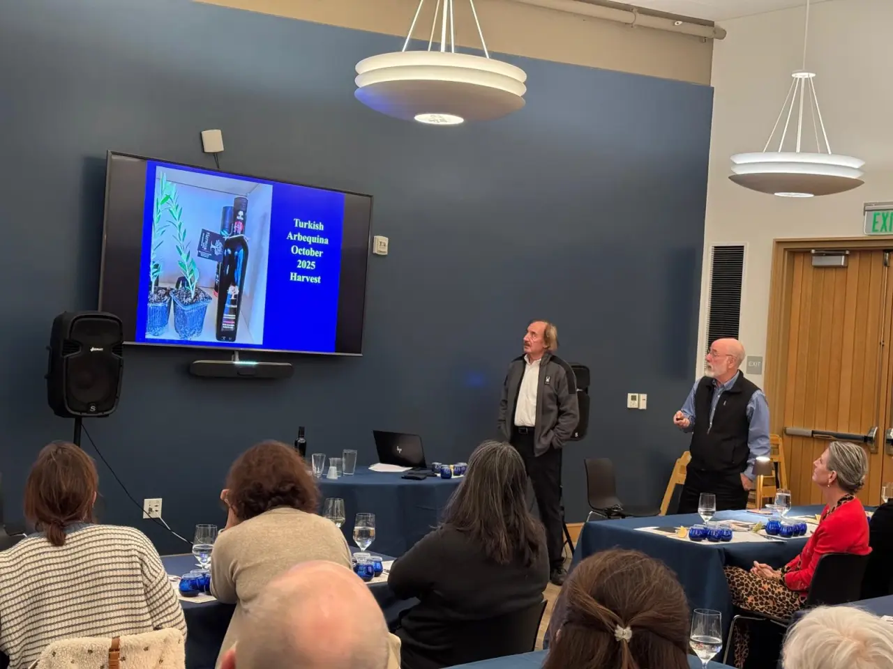 Manisa'nın Köprübaşı ilçesinde üretim yapan Hermus Zeytinyağları'nın sahibi Ali Zihnioğlu, Amerika Birleşik Devletleri'nin San Francisco kentinde Alpine Hills Tenis Kulübü tarafından düzenlenen zeytinyağı tadım panelinde Amerikan katılımcılara eğitim verdi.