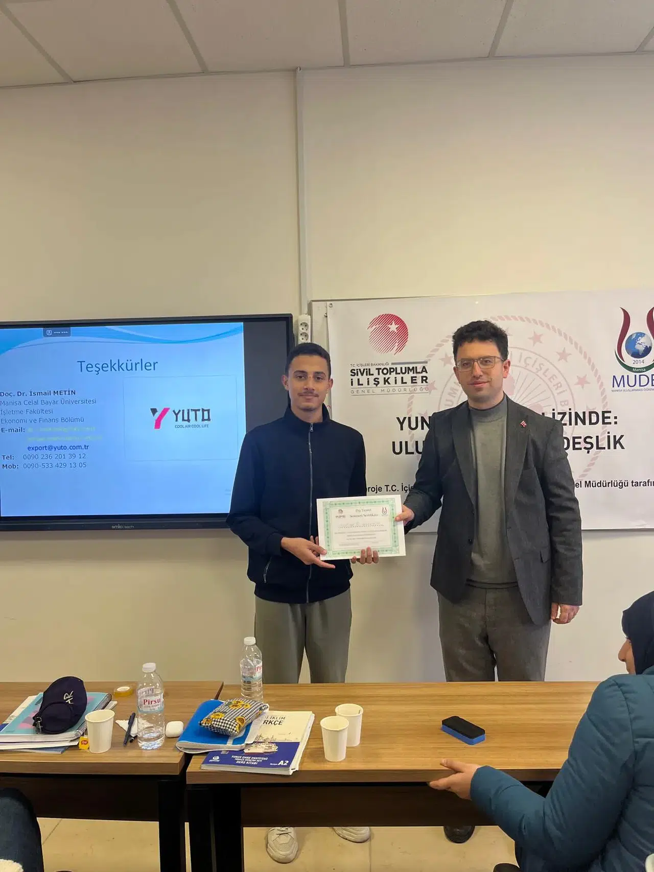 Programın sonunda seminere katılan öğrencilere katılım sertifikaları, MUDER Başkanvekili Aras Güzgülü, Doç. Dr. İsmail Metin ve CBÜ DİLMER Öğretim Görevlisi Adviye Rabia Tekin tarafından takdim edildi. Seminerlerin, proje kapsamında farklı başlıklarla devam edeceği bildirildi.