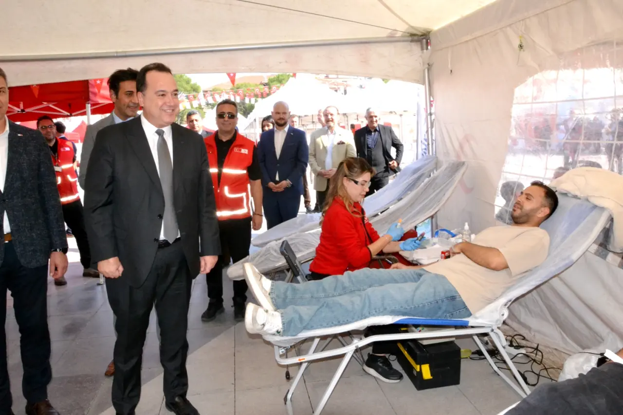 Vali Özkan, “Kızılay'ımız zaten hem insanlarımızın hep hissiyatına tercüman olarak bu çalışmaları yürütüyor geleneksel olarak. Hem sivil yönetim ağır basan, hem kamu kurumlarıyla ağırlıklı bir ağı olan, hem memleketimizin dört bir yanında bu kan bağışları başta olmak üzere bu anlamda insani yardım harekatının da öncü kuruluşudur. Bu yönlü de Kızılay'ımıza teşekkür ederiz. Kızılay'ımız bütün kamu kurum ve kuruluşlarımızla irtibatlı ve koordineli bir şekilde mahalli idareler, belediyeler başta olmak üzere koordineli bir şekilde bu hizmetleri sunarak iyileştiriyor. Manisa'da da bir kan bağışı kampanyasının olmuş olmasından büyük bir mutluluk duyuyoruz. Bütün vatandaşlarımızın bu kan bağışı yapmak üzere çağrıda bizde bulunuyoruz. Kızılay'ın bu hayırlı işine birer nefer olarak müdahil olmak lazım. Diğer insanların sağlığını düşünerek bir yakınımızın gerçekten acil ihtiyacı olabilir. İnsanlarımızın ihtiyacı olabilir. Böyle bir anlamlı hizmete katkı sunmanın hem manevi zevkini de tatmak lazım diye düşünüyoruz. Kızılay'ımıza, Manisa Büyükşehir Belediyemize teşekkür ederiz. Bu kampanyaya destek verdikleri için tüm meslek kuruluşları, sivil toplum kuruluşları, tek tek insanların bu sağlıkla ilgili gerekli ve hayırlı işe katkı ve katılım sağlamasının kıymetli olduğunu ifade ederek herkesi davet ediyorum” dedi.